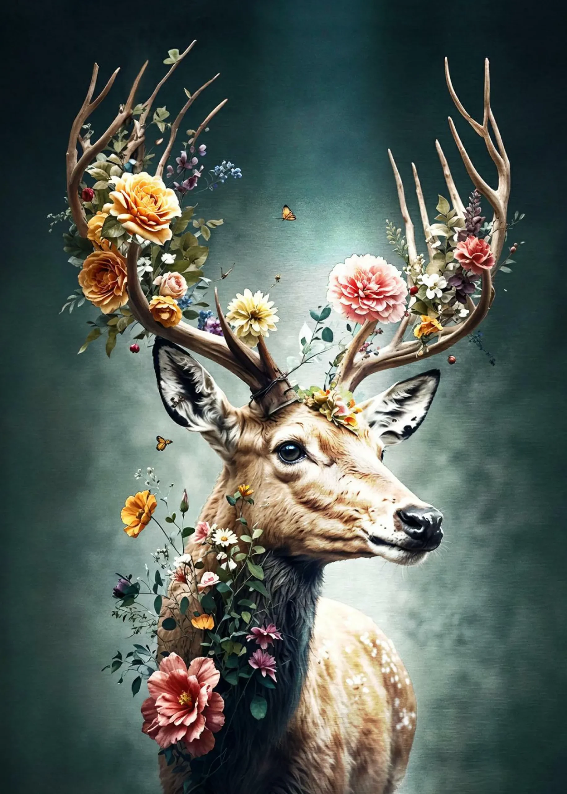· DEER WITH FLOWERS III