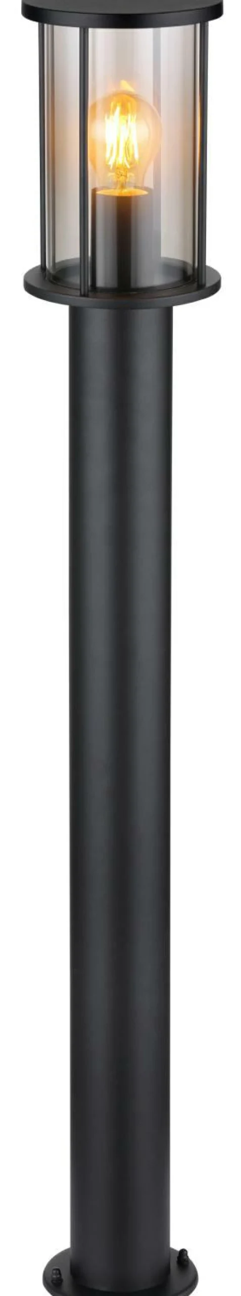· Die Außenleuchte der Serie GRACEY hat ein Gehäuse aus schwarz mattiertem Edelstahl und einen rauchfarbenen Glasschirm. Die Metallstäbe, die den Schirm umgeben, sind ebenfalls in schwarz matt gehalten. Die Schutzart der Leuchte beträgt IP54. Die Abmessungen der Leuchte betragen ø143mm x H1000mm. Die Leuchte ist für eine E27 Glühlampe mit maximal 60W und 230V vorgesehen. Diese ist nicht im Lieferumfang enthalten und muss separat erworben werden.