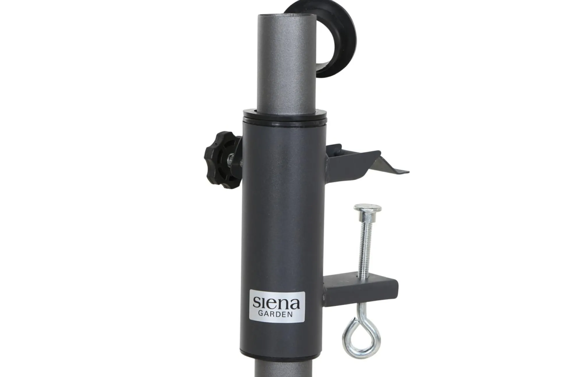· Auf Balkonen können kleinere Schirme mit einer passenden Halterung direkt am Geländer oder einem Mauervorsprung befestigt werden. Die Klammer ist aus pulverbeschichtetem Stahl gefertigt und hält Schirmstöcke von 32 ? 48 mm in Position.