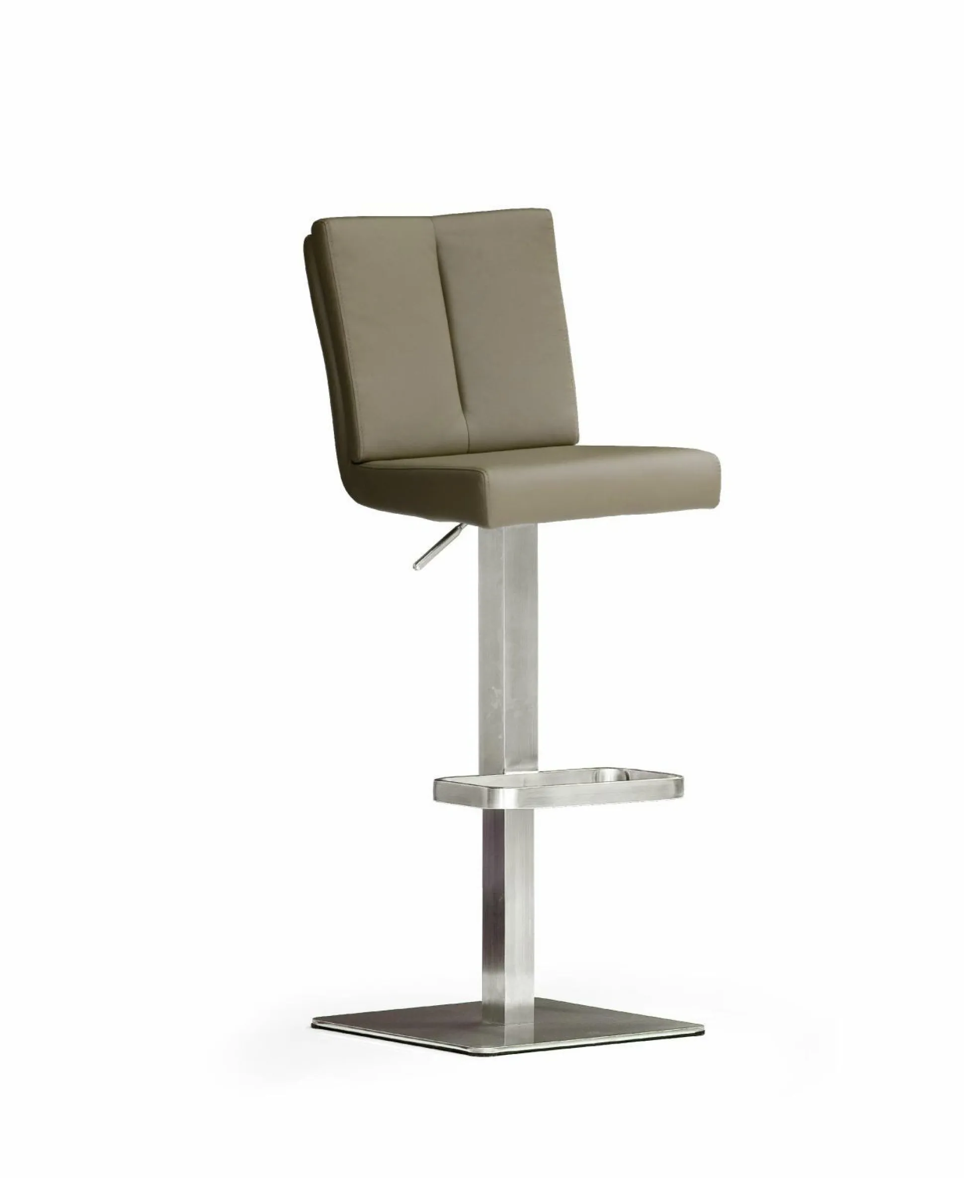 Ganz edel präsentiert sich der Barhocker Bruni. Das Gestell besteht aus Edelstahl, besitzt eine runde Liftsäule und ist auf einem eckigen Tellerfuß befestigt. Praktischerweise ist hier eine Fußstütze vorhanden, auf der Sie Ihre Füße absetzen können. Die Sitzhöhe ist zwischen 89 cm und 114 cm einstellbar. Dieser Hocker ist mit einer Sitzfläche in einer cappuccinofarbigen Lederoptik versehen. Genießen Sie Ihre freie Zeit an der Bar mit Ihren Freunden und leckeren Getränken!