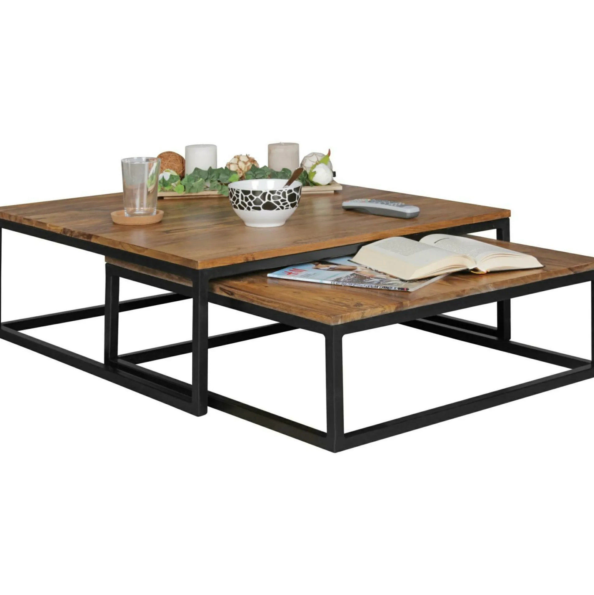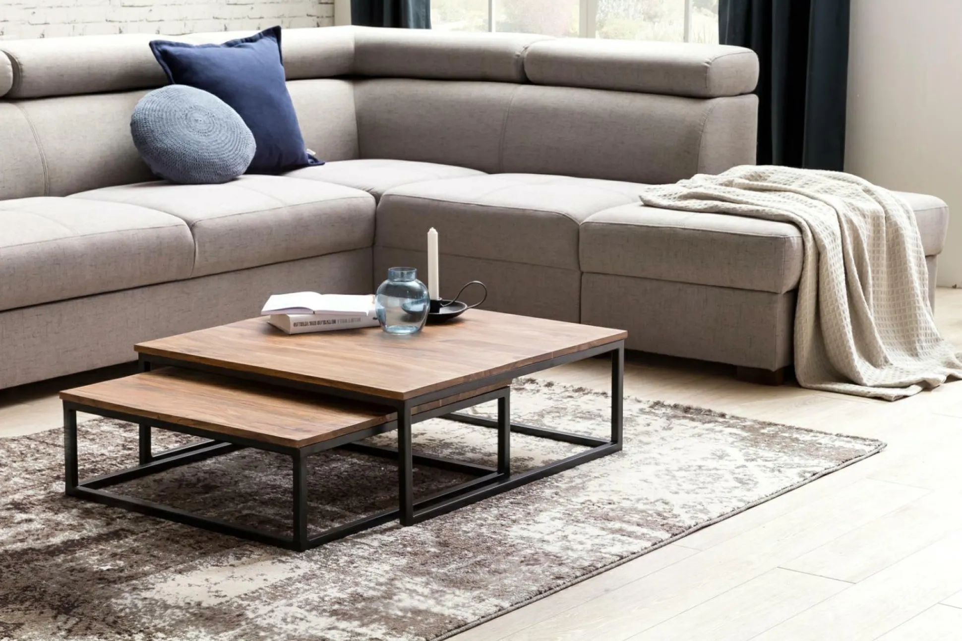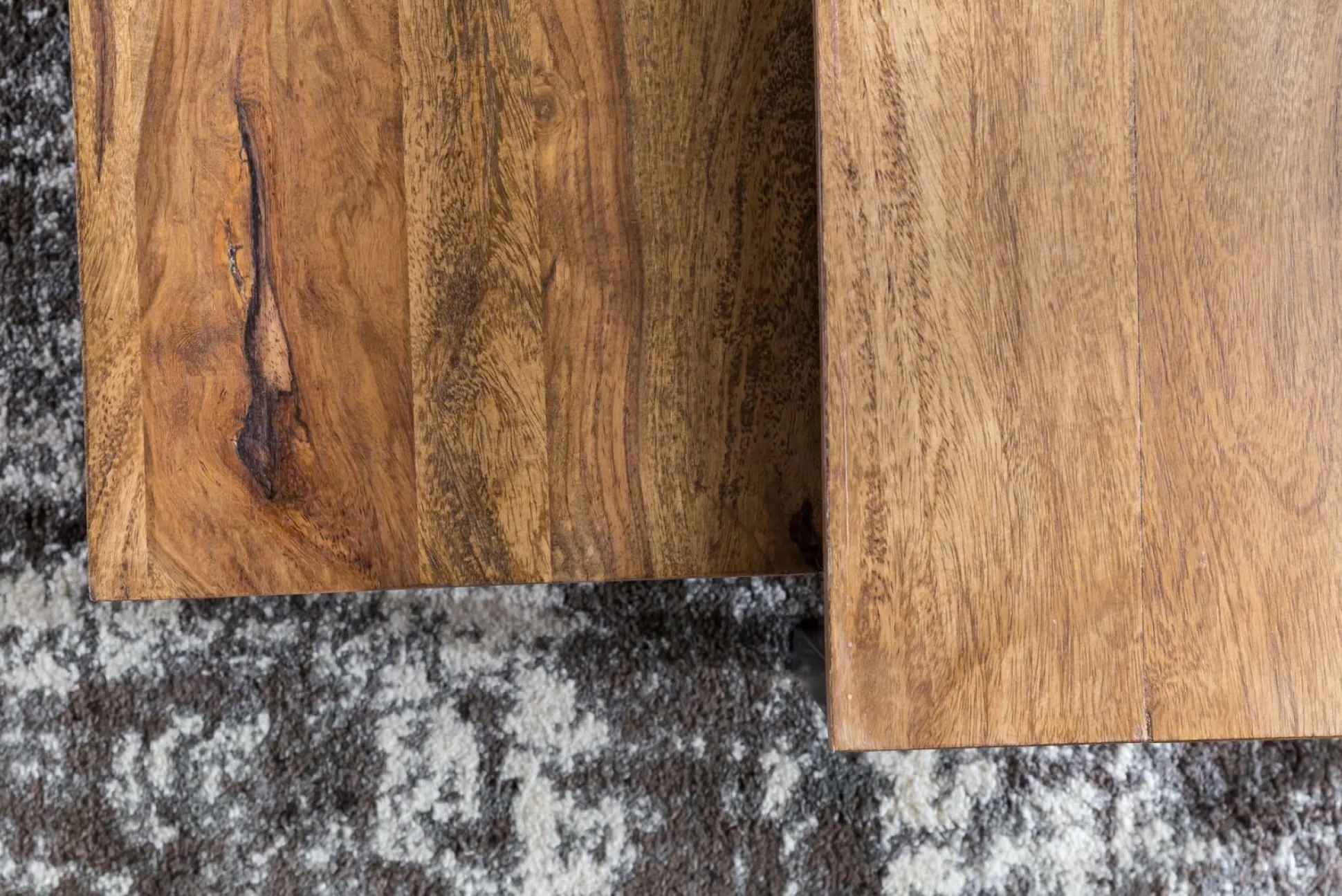 · Abmessungen – Kleiner Tisch B x H x T: 65 x 22 x 65 cm, Abstand zwischen beiden Tischen: 2 cm