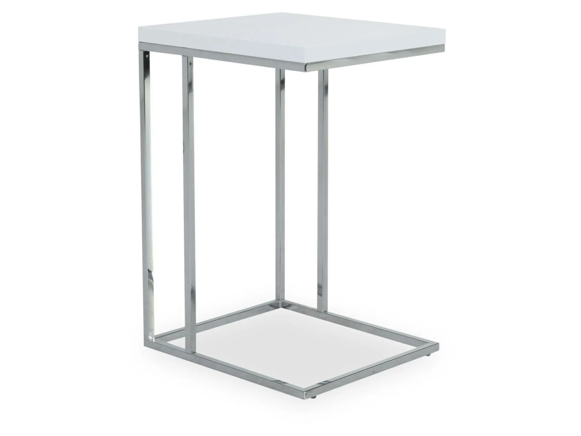 Der Beistelltisch Michi beschreibt ein modern funktionales Element für viele Wohnbereiche. Der schlichte Tisch besteht aus einer Deckplatte aus weißem Dekor in Hochglanz und einem verchromten Metallgestell. Durch die Größe und den dezenten Stil, kann der Tisch in diverse Stile und Konzepte integriert werden.