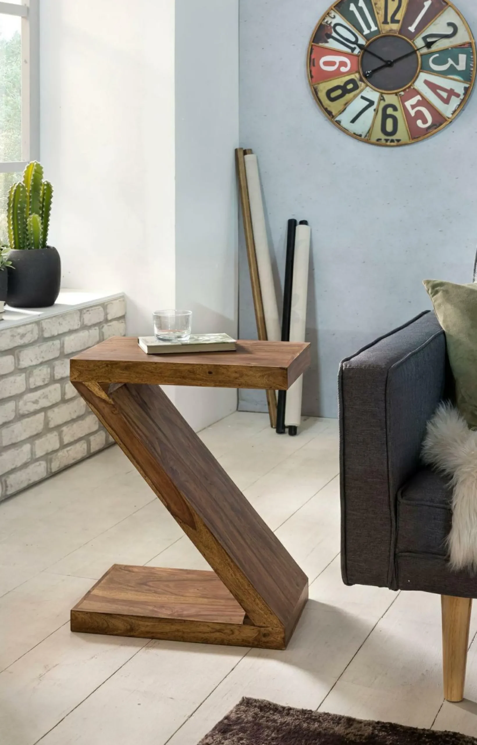 Sie werden vom praktischen Beistelltisch MUMBAI begeistert sein. Der braune Beistelltisch wertet Ihr Interieur mit seinem ästhetischen Design auf und wirkt ausgesprochen stilvoll. Er vermag mit der Qualität des verwendeten Holzes zu überzeugen. Das Modell MUMBAI wird Ihr Einrichtungskonzept auch dank seiner Formensprache auf verschiedenste Weisen bereichern. In seinem modernen Design macht das Tischchen eine hervorragende Figur. Es besitzt eine Länge von insgesamt 30 Zentimetern, eine Breite von 44 Zentimetern und eine Höhe von 59 Zentimetern. Ihr neuer Beistelltisch macht in jedem Zuhause eine gute Figur.