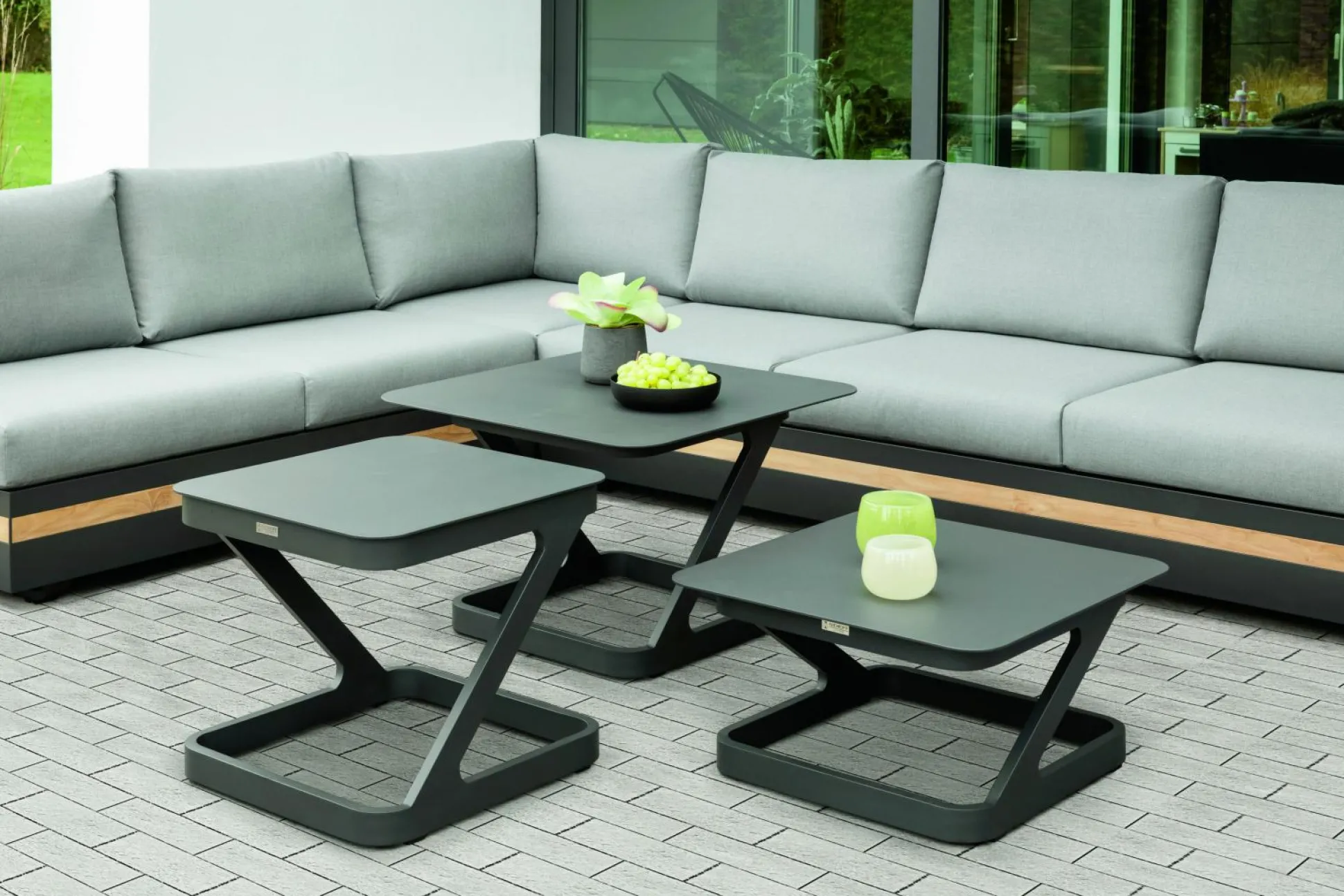 · Beistelltisch QUATTRO Tischplatte und Gestell Aluminium pulverbeschichtet, Farbton anthrazit, 60×60 / 31 cm