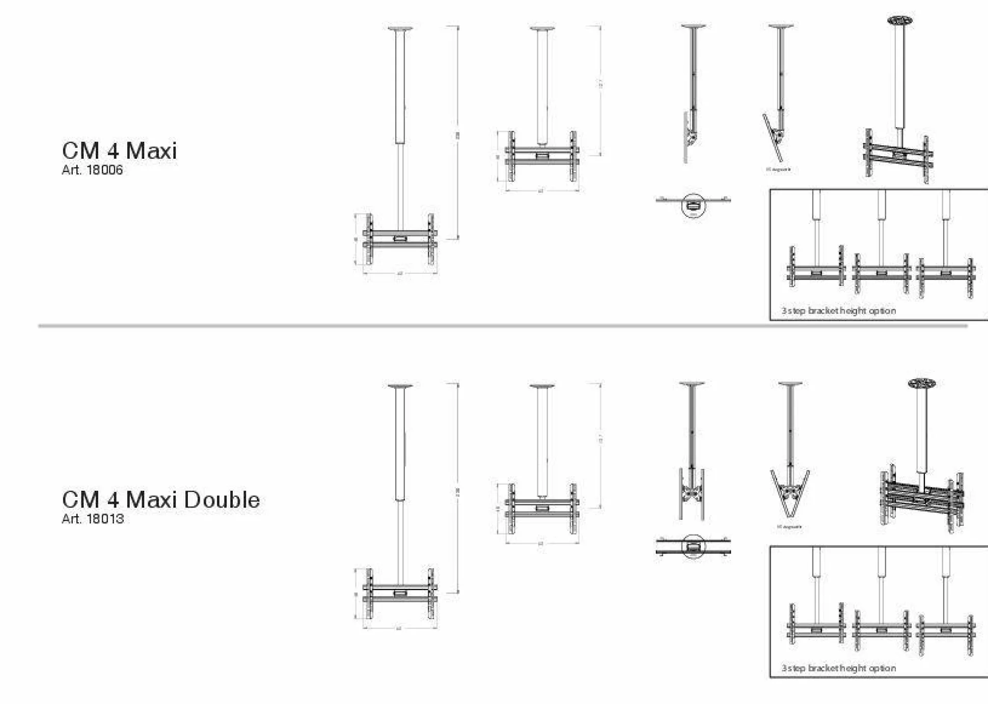 · VCM universelle Deckenhalterung CM 4 Maxi Double für zwei handelsüblichen Displays in den Größen von 42-65 Zoll (106-165 cm) bis max. 25 kg (pro Display).