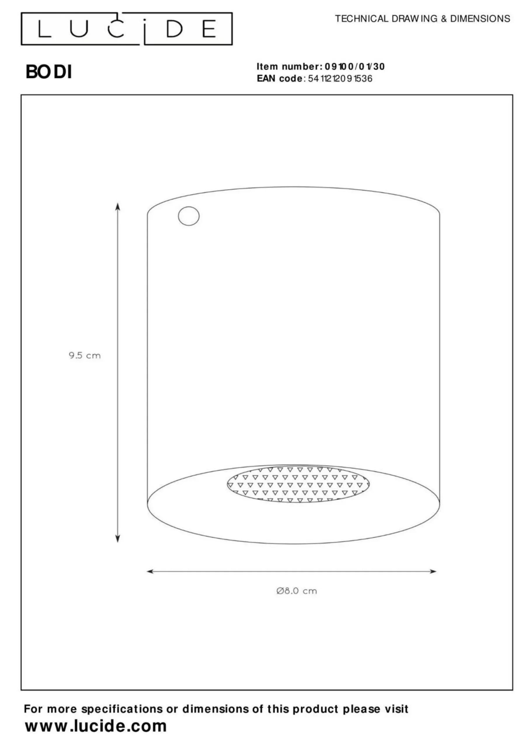 · Der Aufbauspot Bodi rund von Lucide ist eine Aluminiumarmatur und hat somit eine hochwertige Ausstrahlung. Mit einem Durchmesser von 8 cm ist die Lampe einfach über der Unterputz-Abzweigdose zu platzieren. Die Lampe ist auch sehr geeignet als Lichtquelle im kleinen Flur oder in der Toilette. Aufgereiht ist die Bodi auch über dem Bar oder der Anrichte zu verwenden. Die Bodi is mit einer GU10 Hochvoltfassung versehen und wird ohne Lichtquelle geliefert. Sie haben die Wahl aus einem (nicht) abblendbaren GU10 LED-Spot oder einem traditionellen abblendbaren GU10 Halogenspot. Die Bodi ist in Aluminiumfarbe, weißer und schwarzer Farbe erhältlich.