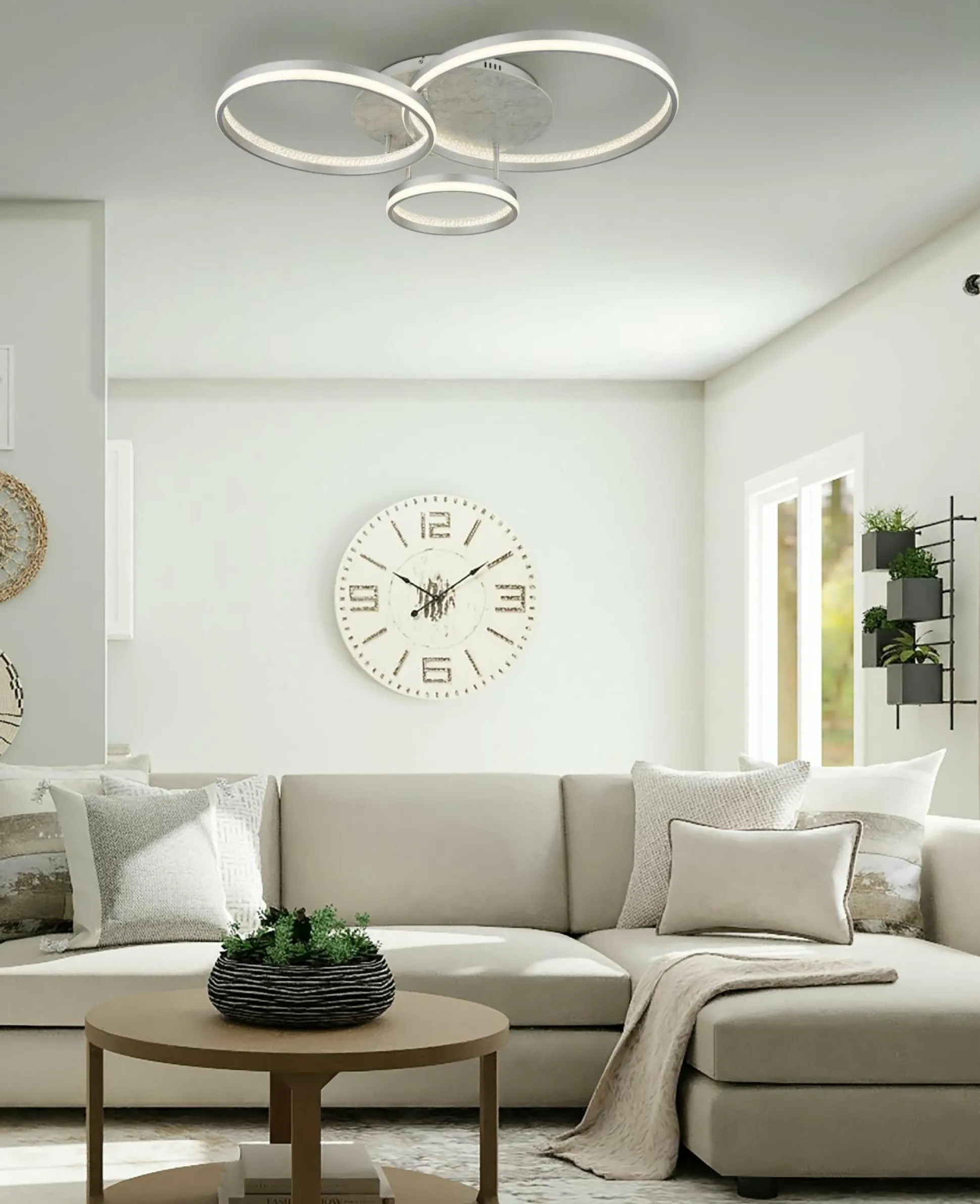 Diese formschöne Deckenleuchte sorgt für eine ansprechende Atmosphäre und hervorragende Lichtverhältnisse in Ihrem Zuhause. Alle Qualitäten und Besonderheiten der Marke GLOBO Lighting sind in der Lampe kombiniert. Das schöne Design fügt sich problemlos in Ihre Einrichtung ein und gibt dabei gemütliches Licht für ein tolles Ambiente ab. Das Modell MARY misst in der Gesamthöhe 16,7 Zentimeter, hat eine Länge von 85,5 Zentimetern und verfügt über eine Breite von 68,5 Zentimetern. Es besitzt eine FEST-Fassung. Die Lampe ist ein Must-Have, um jeglichen Räumen eine schöne Atmosphäre zu verleihen. Die Deckenlampe aus Metall eignet sich ideal für die individuelle Beleuchtung Ihrer Wohnung und gibt Ihrer Einrichtung das gewisse Etwas. Kreieren Sie mit dieser Leuchte eine ansprechende Beleuchtung in Ihrem Zuhause.