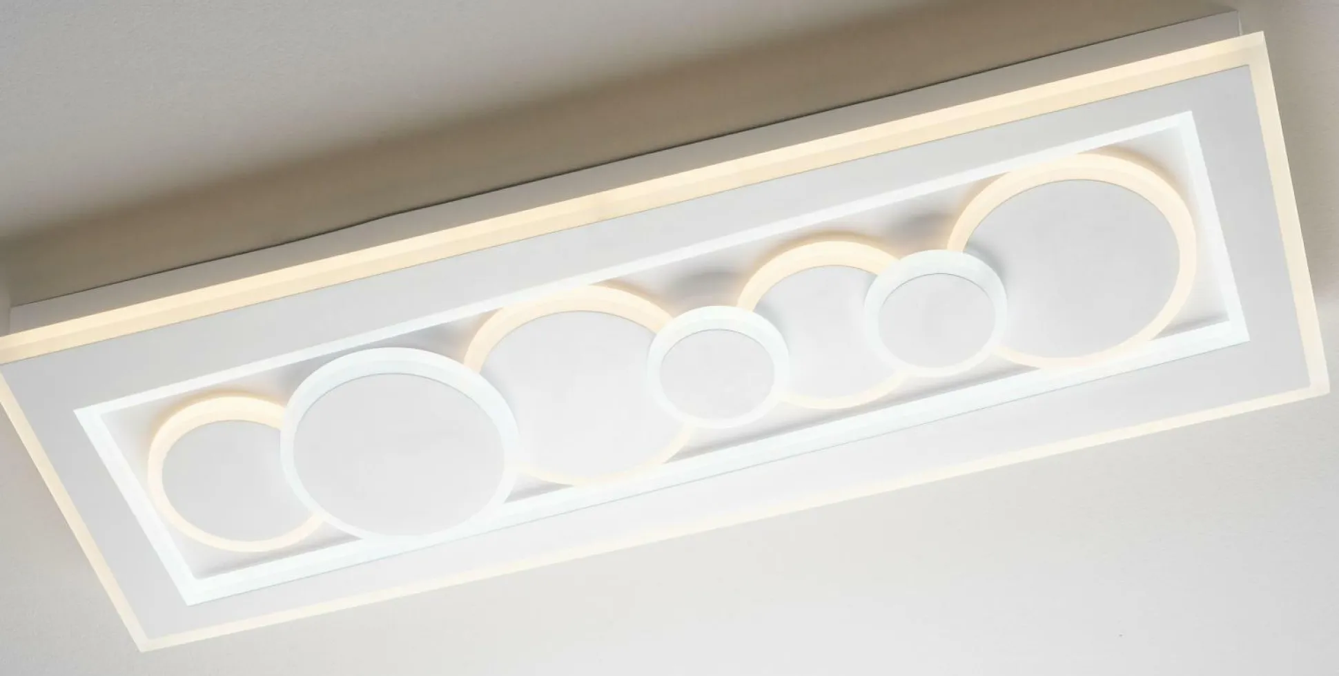 Diese Deckenlampe verleiht auch Ihrem Zuhause etwas Einzigartiges. Das schöne Design der Lampe fügt sich problemlos in jede Einrichtung ein und spendet dabei angenehmes Licht für ein tolles Wohnambiente. Wählen Sie mit dieser Deckenleuchte die hohe Qualität der Marke MONDO. Die Deckenlampe aus Acryl weist ein Längenmaß von insgesamt 90 Zentimetern auf, ist 6,5 Zentimeter hoch und verfügt über eine Breite von 30 Zentimetern. Sie ist mit einer LEDF-Fassung ausgestattet. Die Deckenleuchte sorgt für eine schöne Optik und schenkt jedem Zimmer obendrein mehr Atmosphäre. Dank des gelungenen Lichtes der Deckenlampe wird jeglicher Raum ideal präsentiert. Untermalen Sie mit dieser Deckenlampe die stimmungsvolle Wohnatmosphäre Ihres Zuhauses.