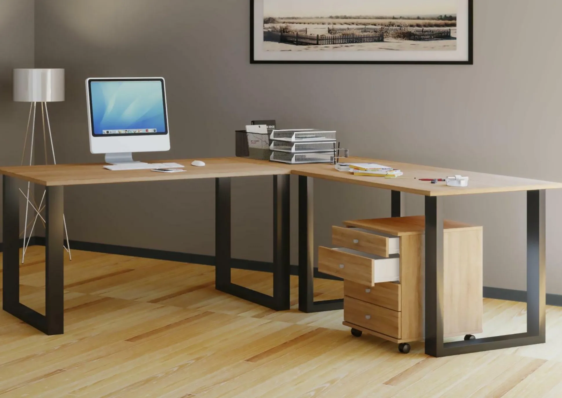 · Der VCM Eckschreibtisch “Lona SI“ in Holzstruktur-Nachbildung ist ein Schreibtisch mit besonderem Design-Anspruch.