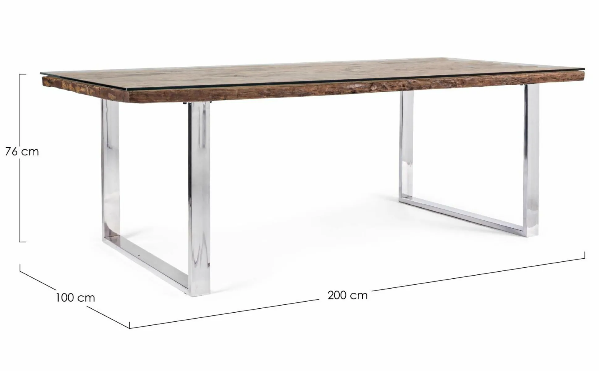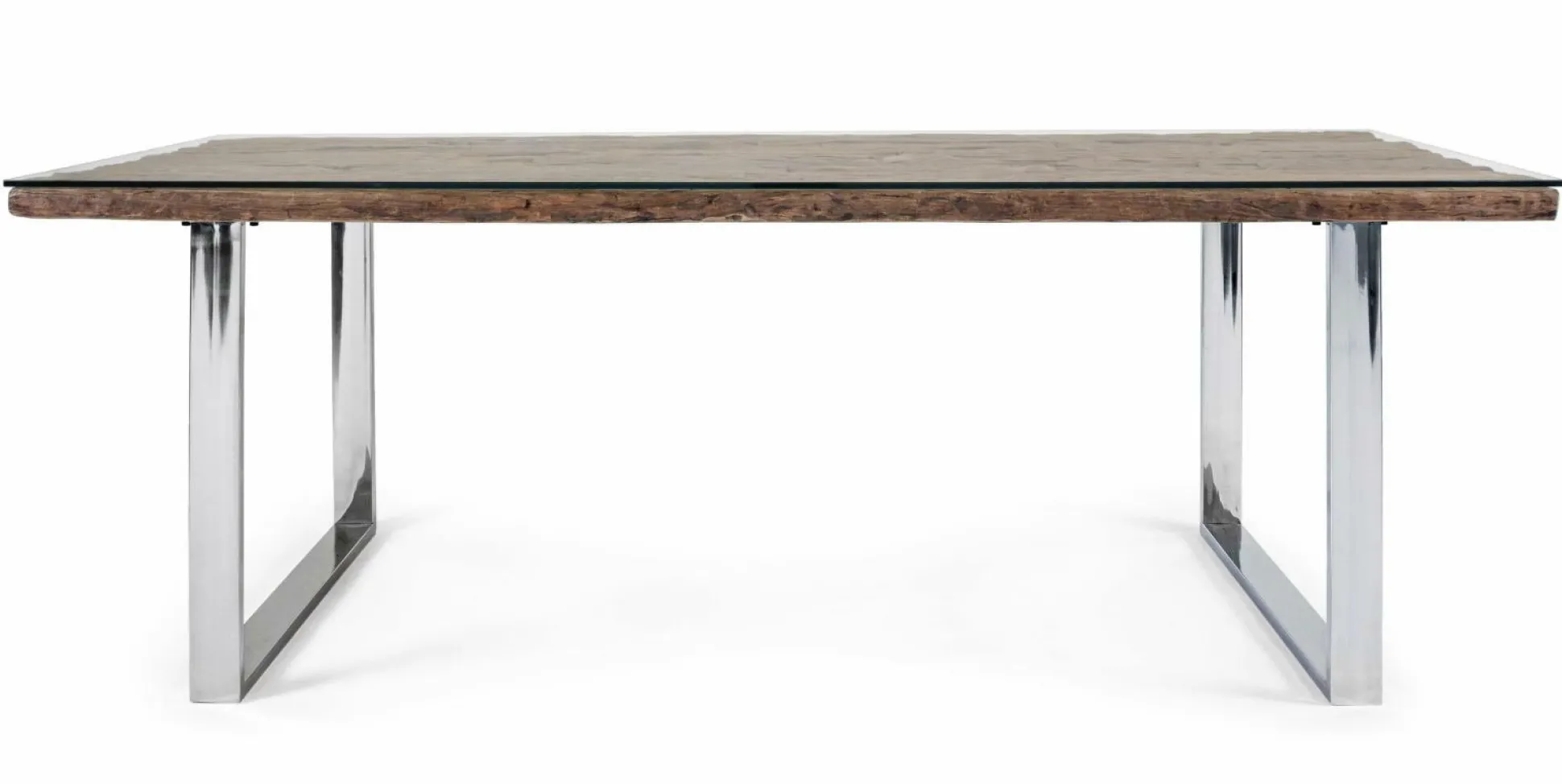 Der Esstisch STANTON ist ein echter Hingucker, der zum neuen Lebensmittelpunkt in Ihrem Zuhause wird. Das gemütliche Design wird dabei Familie und Freunde staunen lassen. Der Esstisch kommt mit einer Platte aus recyceltem Holz und einer Abdeckung aus Glas. Die natürliche Holzoptik kann sich mit der Zeit verändern. Risse und Unebenheiten sind gewollt und charakteristisch für dieses Holz und machen aus jedem Modell ein Unikat. Die Beine aus rostfreiem Stahl runden das Design perfekt ab. Der moderne Materialmix macht dabei aus dem Tisch etwas ganz Besonderes. An diesem Tisch können Sie zusammen mit Ihren Liebsten leckere Mahlzeiten genießen.