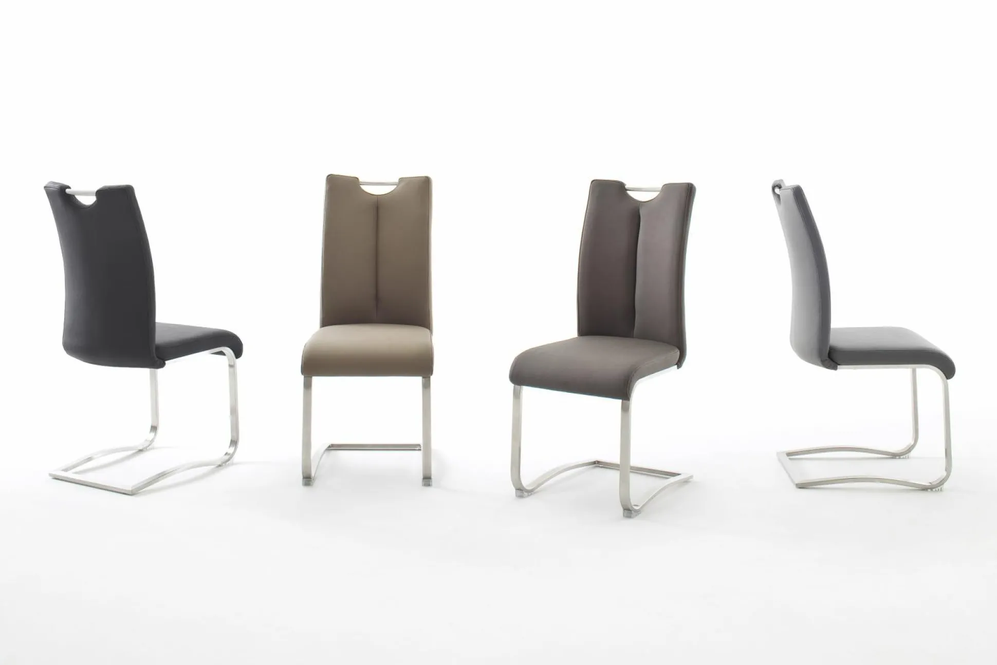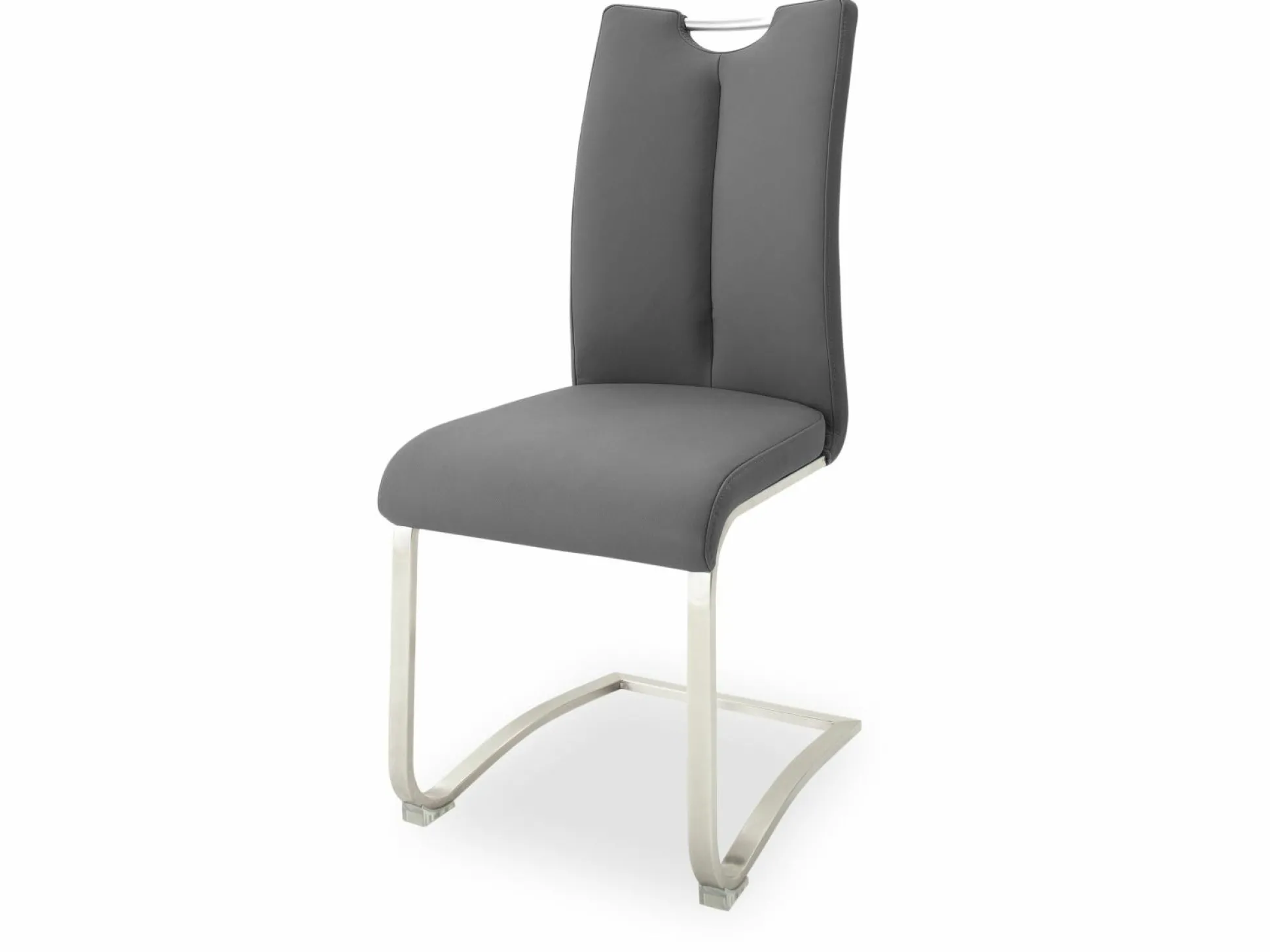 Schaffen Sie mit dem Freischwinger Atos 1 der Marke MCA eine moderne und bequeme Sitzgelegenheit. Die Sitzfläche und die Rückenlehne sind gepolstert und mit einem grauen Stoff bezogen. Eine Aussparung mit Griff in der Rückenlehne ermöglicht ein leichtgängiges Verrücken des Schwingstuhles. Das flache Fußgestell verleiht dem Stuhl einen sicheren Stand und vollendet das zeitlose Design geschmackvoll.