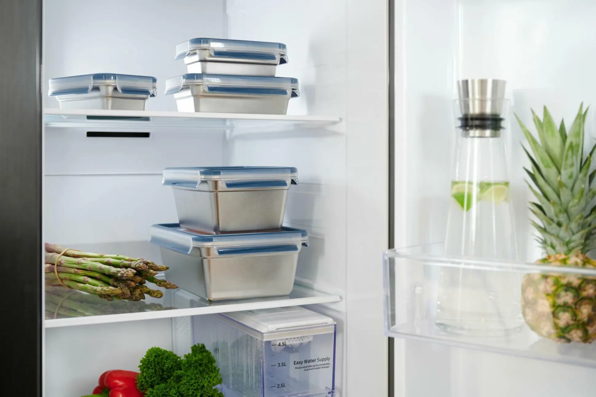 · Behälter aus hochwertigem Edelstahl 18/10 besonders robust, leicht und bruchsicher