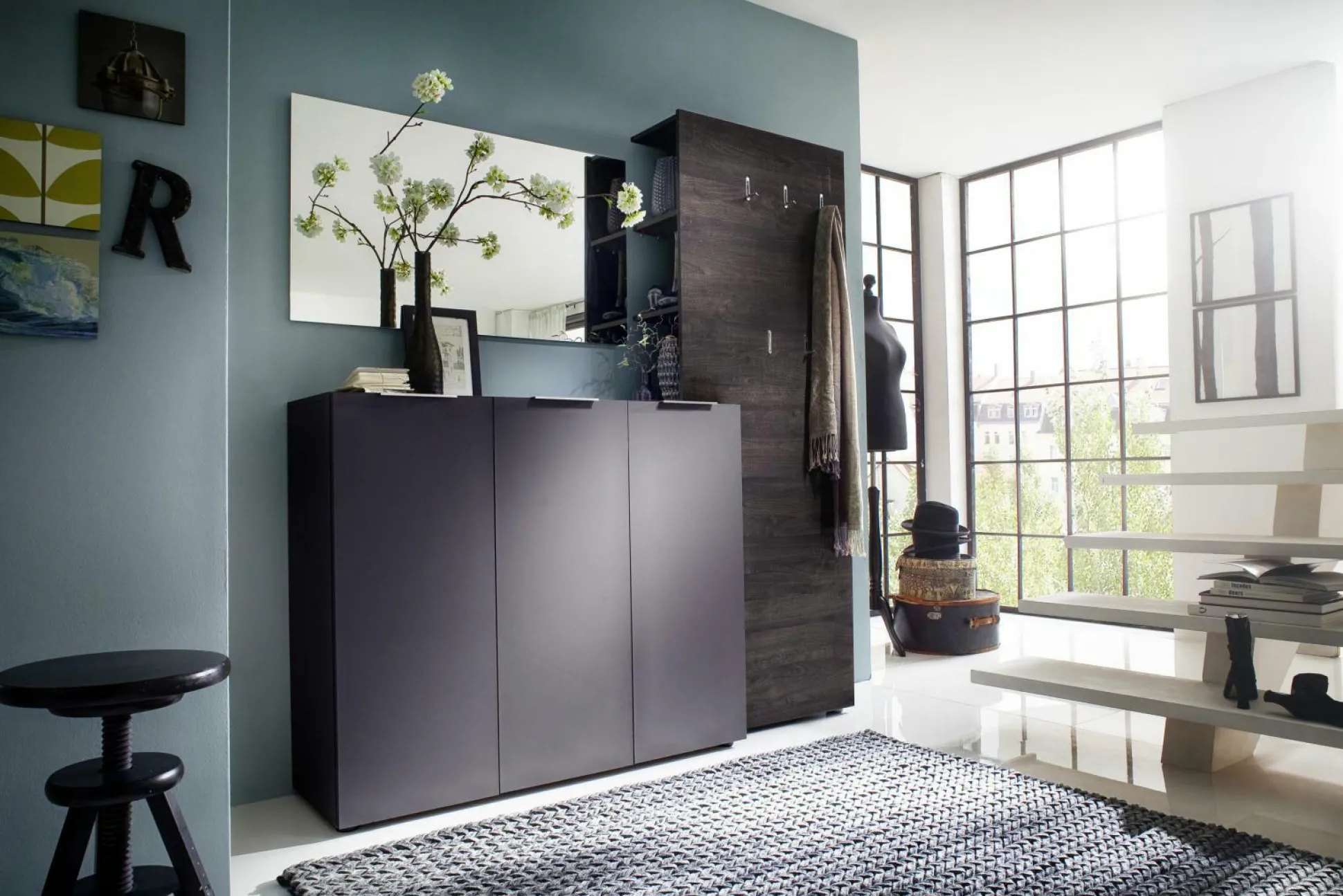 VICENZA GARDER.PANEEL DEKOR WENGE 5 HAKEN,3 ABLAGEFÄCHER