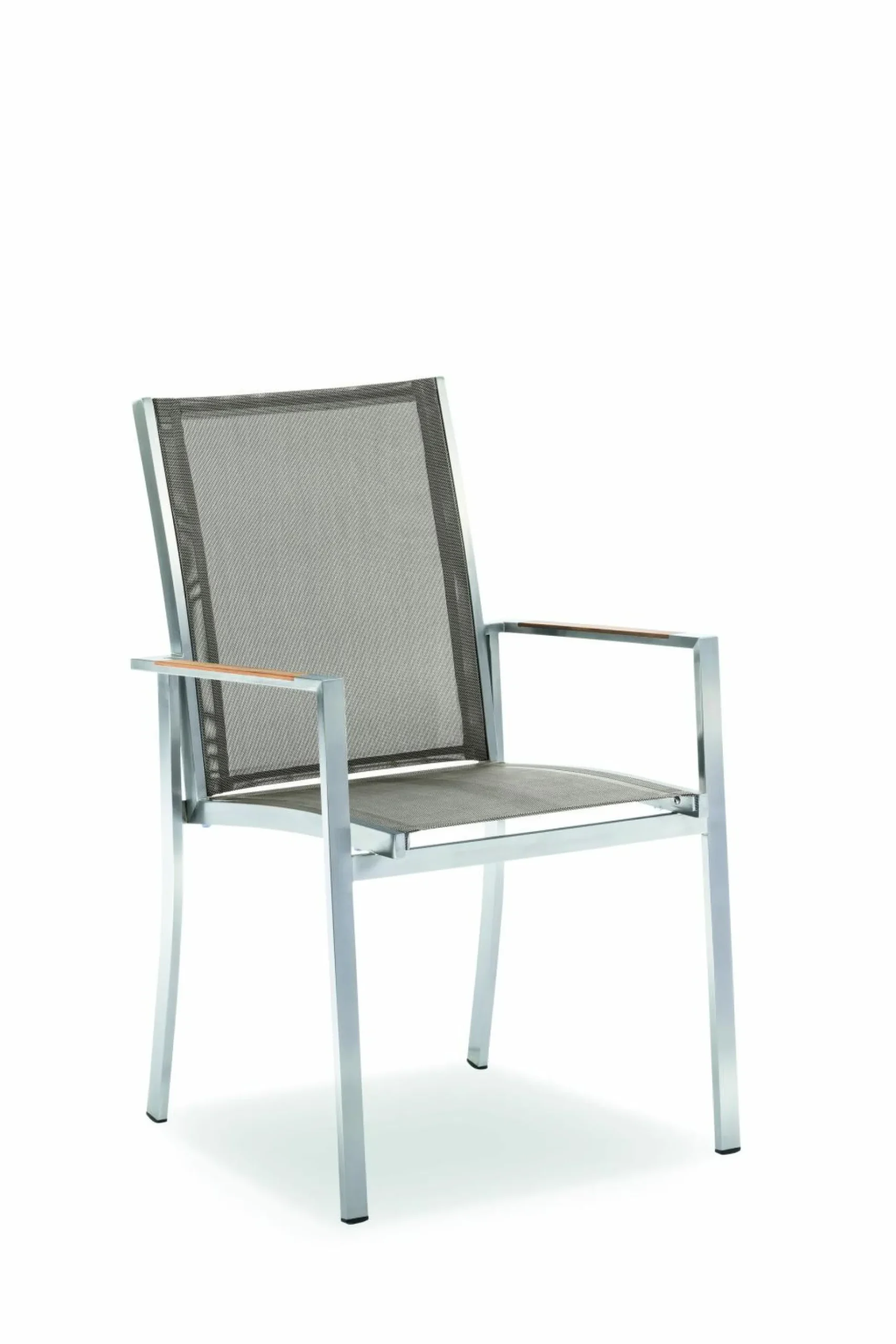 · Armlehnstuhl TINA, Armlehnauflagen Teak natur, Gestell Edelstahl gebürstet, stapelbar, 57×63 / 90 cm