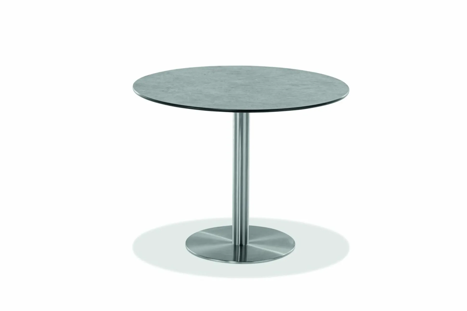 · Tisch BISTRO Tischplatte HPL Zement, Gestell Profilsäule rund Edelstahl gebürstet.