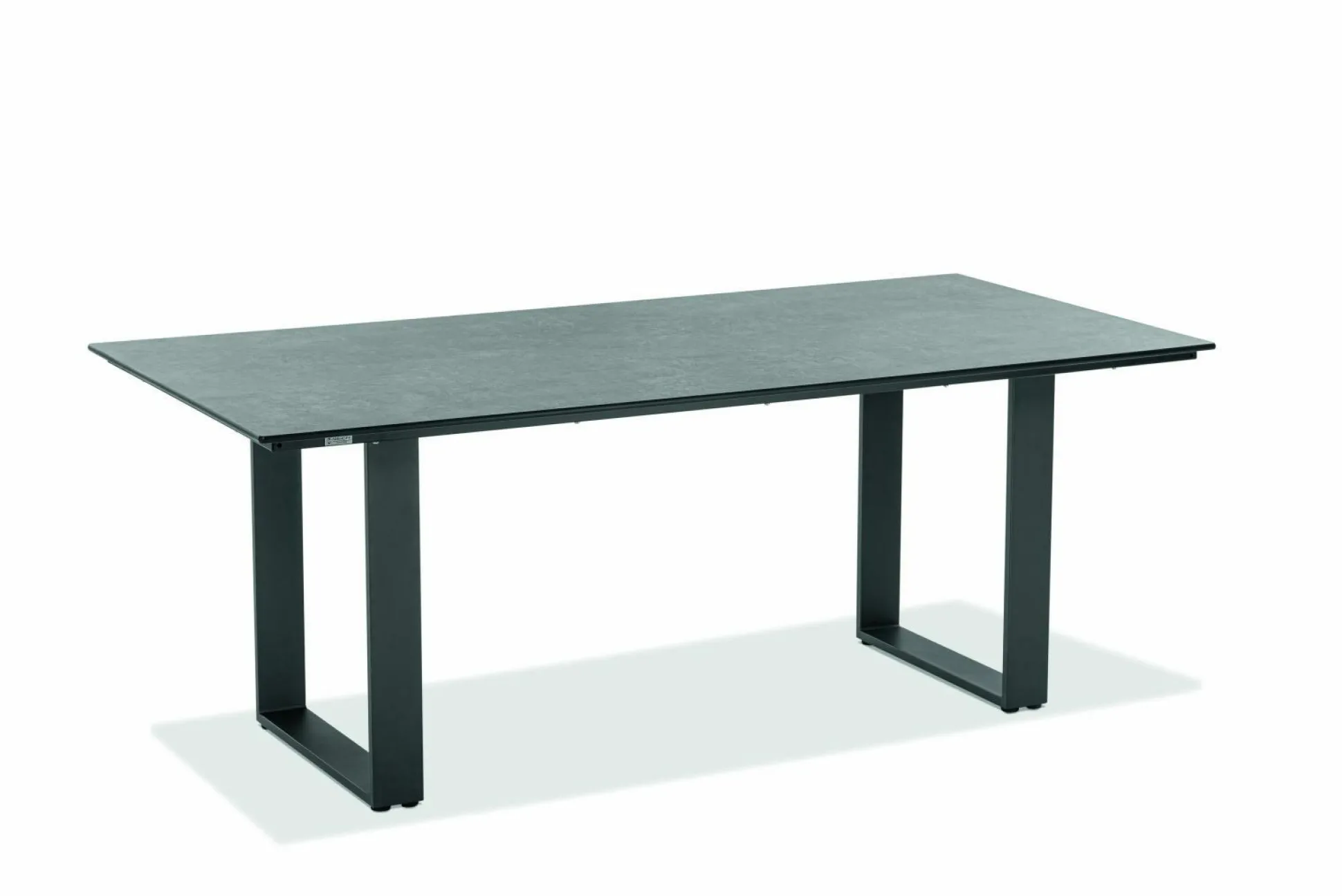 · Tisch NOAH Tischplatte HPL Beton, Gestell Profilkufe Aluminium pulverbeschichtet, Farbton anthrazit.