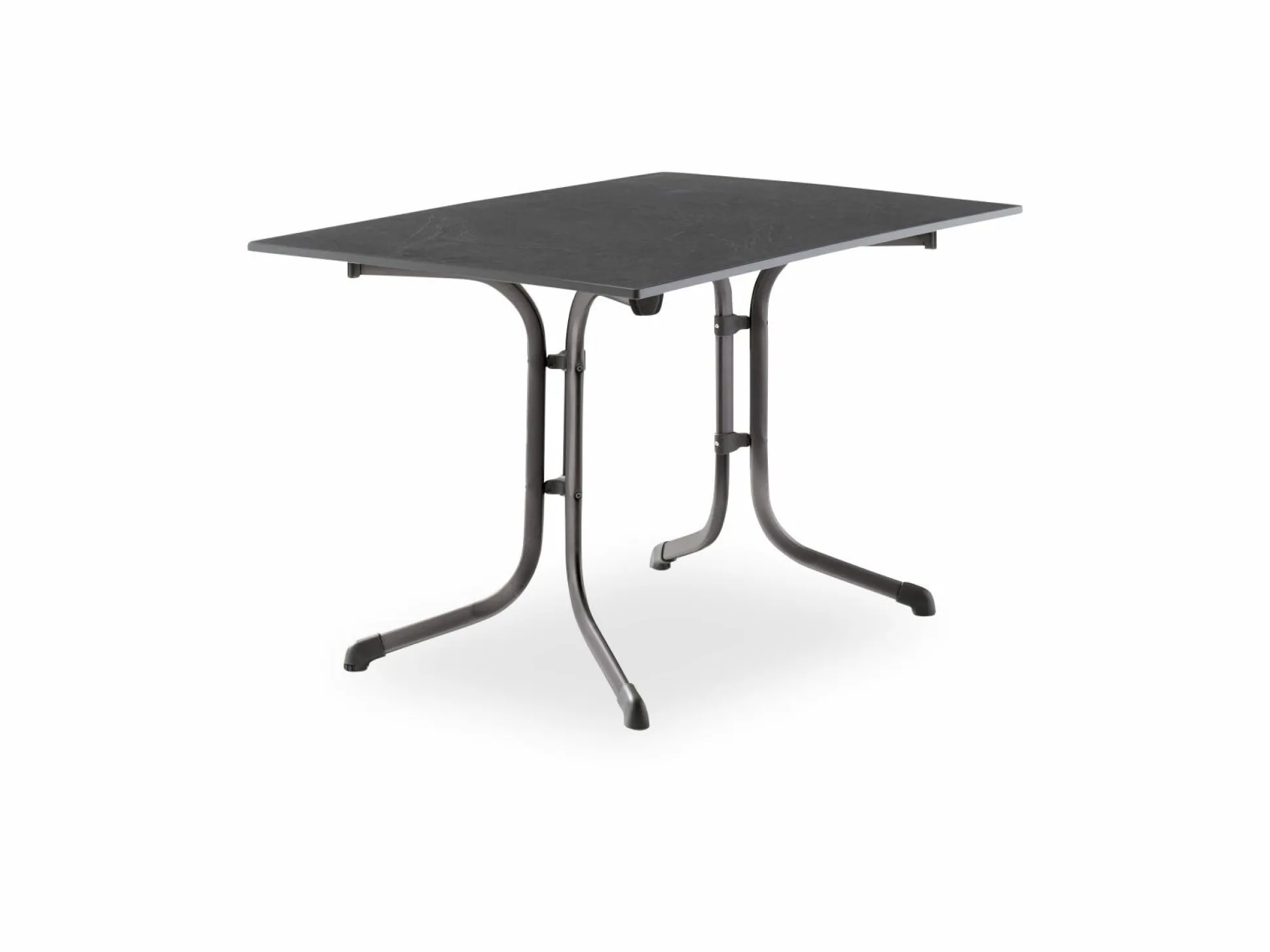 · Der Boulevard-Klapptisch 3160-55 hat ein eisengraues Gestell aus polyesterbeschichtetem Profil-Stahlrohr mit einer Rohrstärke von 35 x 28 mm und eine formschöne vivodur®-Schieferdekorplatte in anthrazit. Der Tisch hat eine Größe von 120x80cm. Durch die Polyesterbeschichtung wird das Gestell unempfindlich gegen Witterungseinflüsse. Die Höhe des Tisches beträgt ca. 73 cm. Damit der Tisch auch auf unebenen Flächen einen festen Stand hat, wurde er mit einem Höhenausgleich ausgestattet. Durch seine Klappfunktion ist der Tisch sehr einfach in der Handhabung. Ein weiterer Pluspunkt für diesen Artikel ist, dass er montagefrei angeliefert wird. So können Sie den Tisch sofort nach Erhalt problemlos in Gebrauch nehmen. Der Tisch lässt sich ideal mit Möbeln aus dem SIEGER-Sortiment kombinieren. Zudem profitieren Sie bei diesem Artikel von der jahrzehntelangen Erfahrung die SIEGER bei der Herstellung von Gartenmöbeln vorweisen kann.