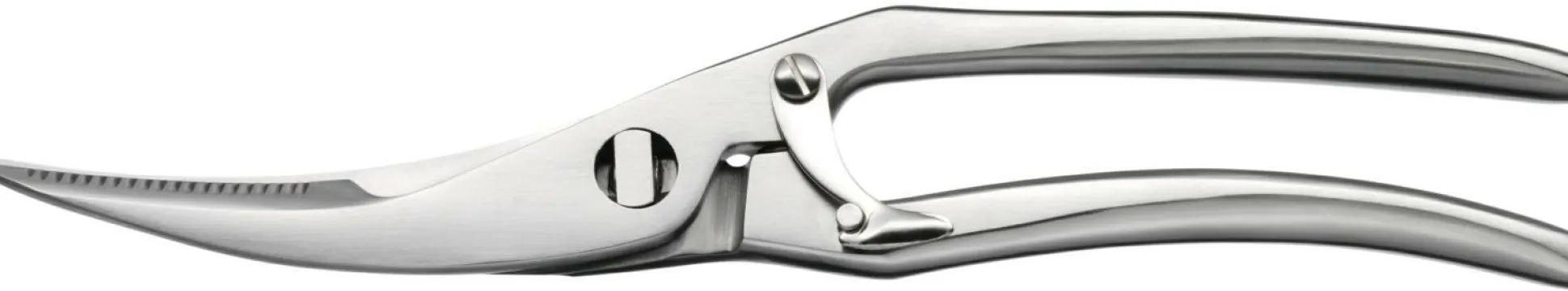 Aus rostfreiem Edelstahl gefertigt, gefällt die Geflügelschere in matt von WMF. Zwei Sicherheitsgriffe sorgen für eine ideale Kraftübertragung und die Schere verfügt über einen Schutz vor Abrutschen und Verbrennungen. Die gebogene Klingenform erleichtert das Handling und sorgt für ein einfaches Schneiden.