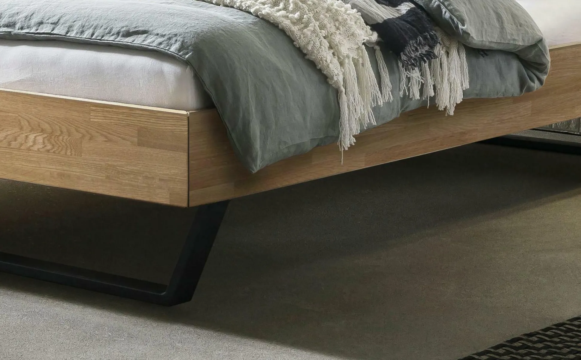 · Die stylischen Kufen lassen das Modell Ostino regelrecht gleiten. Reduktion auf das Wesentliche gilt hier durch das Fehlen eines Kopfteils. Mit der Verbindung von Metall und Holz bietet das Bett eine moderne Formsprache, die sich in jedes Schlafzimmer integrieren lässt.