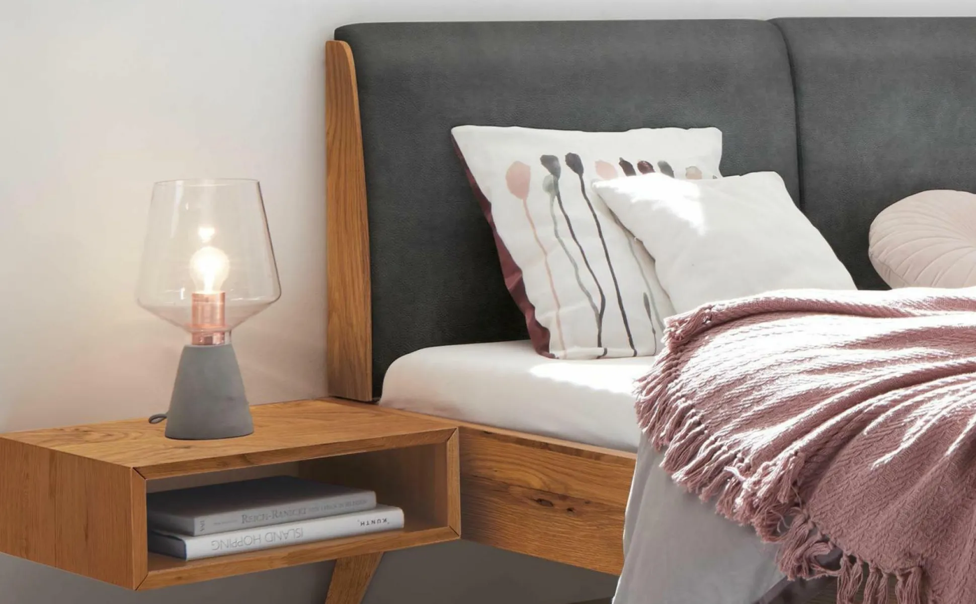 · Simone besticht durch die zwischen Massivholz und Polster. Die Holzblenden am Kopfteil nehmen die natürliche Eleganz der Bettfüsse auf. Bei diesem mit Handwerk gefertigten Bett sind es auch die Details, die den Unterschied ausmachen. Der einfache Aufbau des Bettgestells lässt sich unzählige Male wiederholen, Kraft und Stabilität bleiben erhalten.