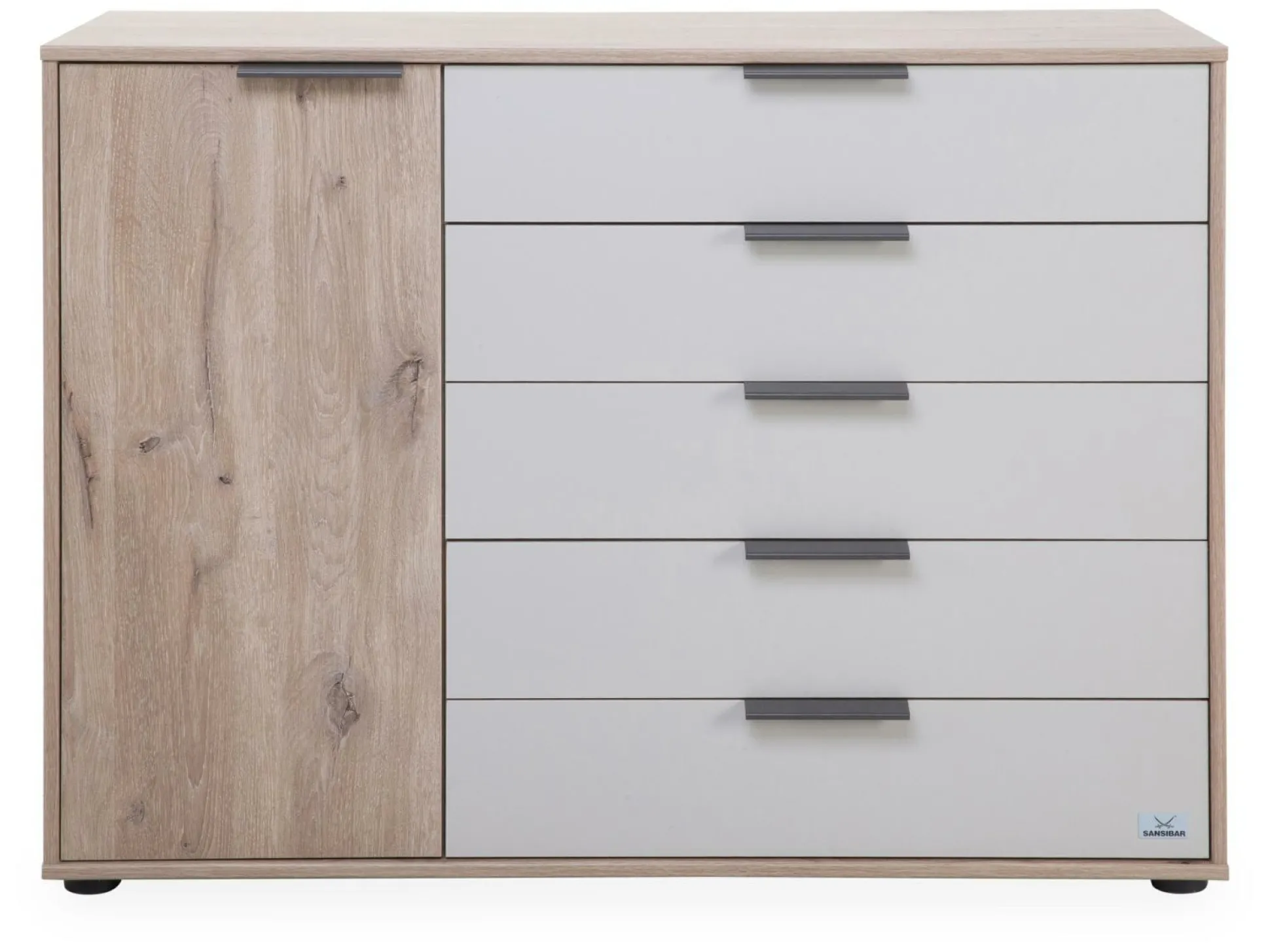 · mit einer Tür links und fünf Auszügen rechts
