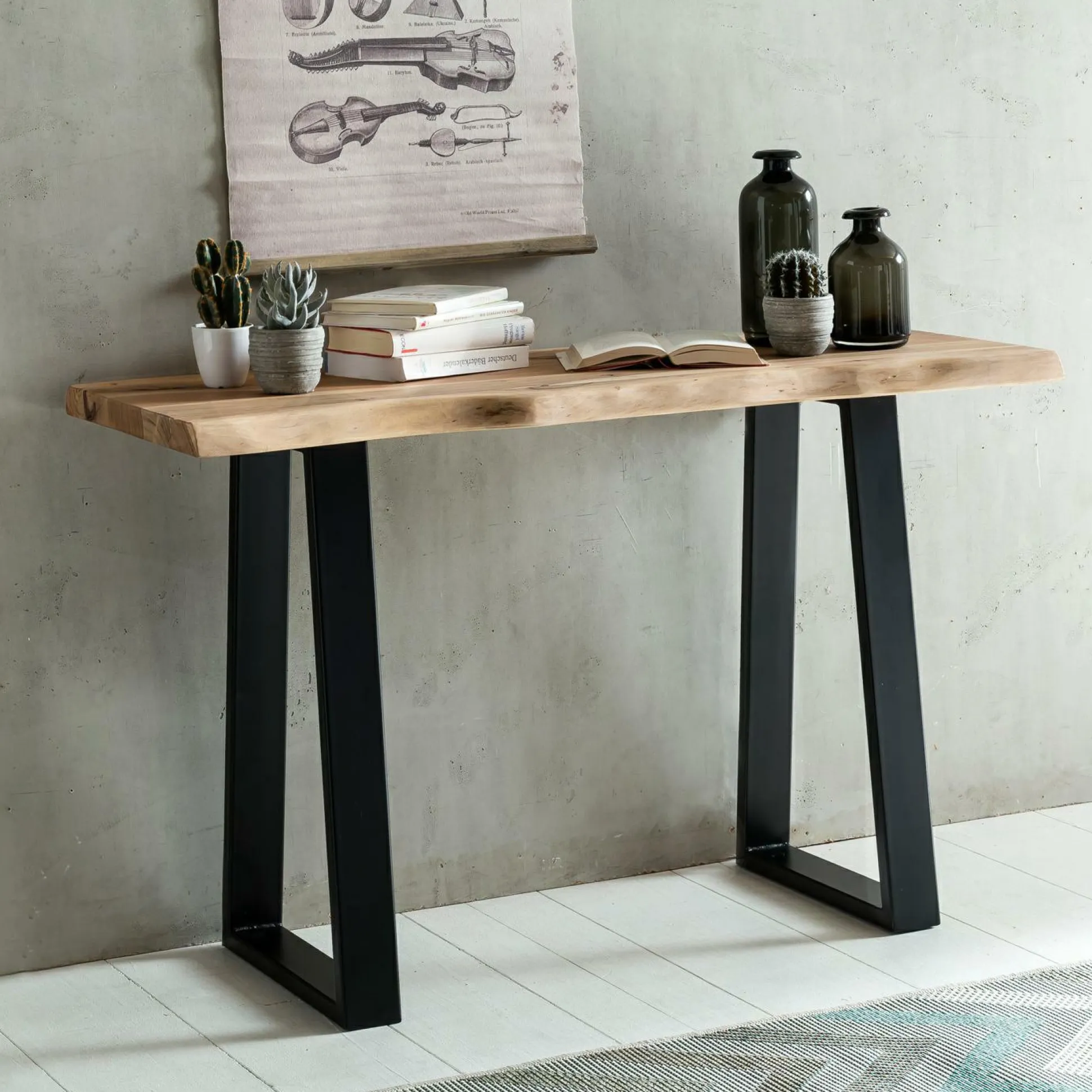 Dieser Konsolentisch überzeugt auf ganzer Linie. In seinem modernen Design macht der braune Beistelltisch eine optimale Figur. Dank seiner Konstruktionsweise kann der Tisch aus Holz ohne Probleme in verschiedenste Inneneinrichtungen integriert werden. Die geschmackvolle Optik des Beistelltischs ist ideal für Ihre Interieur. Das Modell GAYA besitzt ein Längenmaß von insgesamt 45 cm, ein Breitenmaß von 120 cm sowie ein Höhenmaß von 75 cm. Dieser Beistelltisch passt zu nahezu jedem Einrichtungsstil.