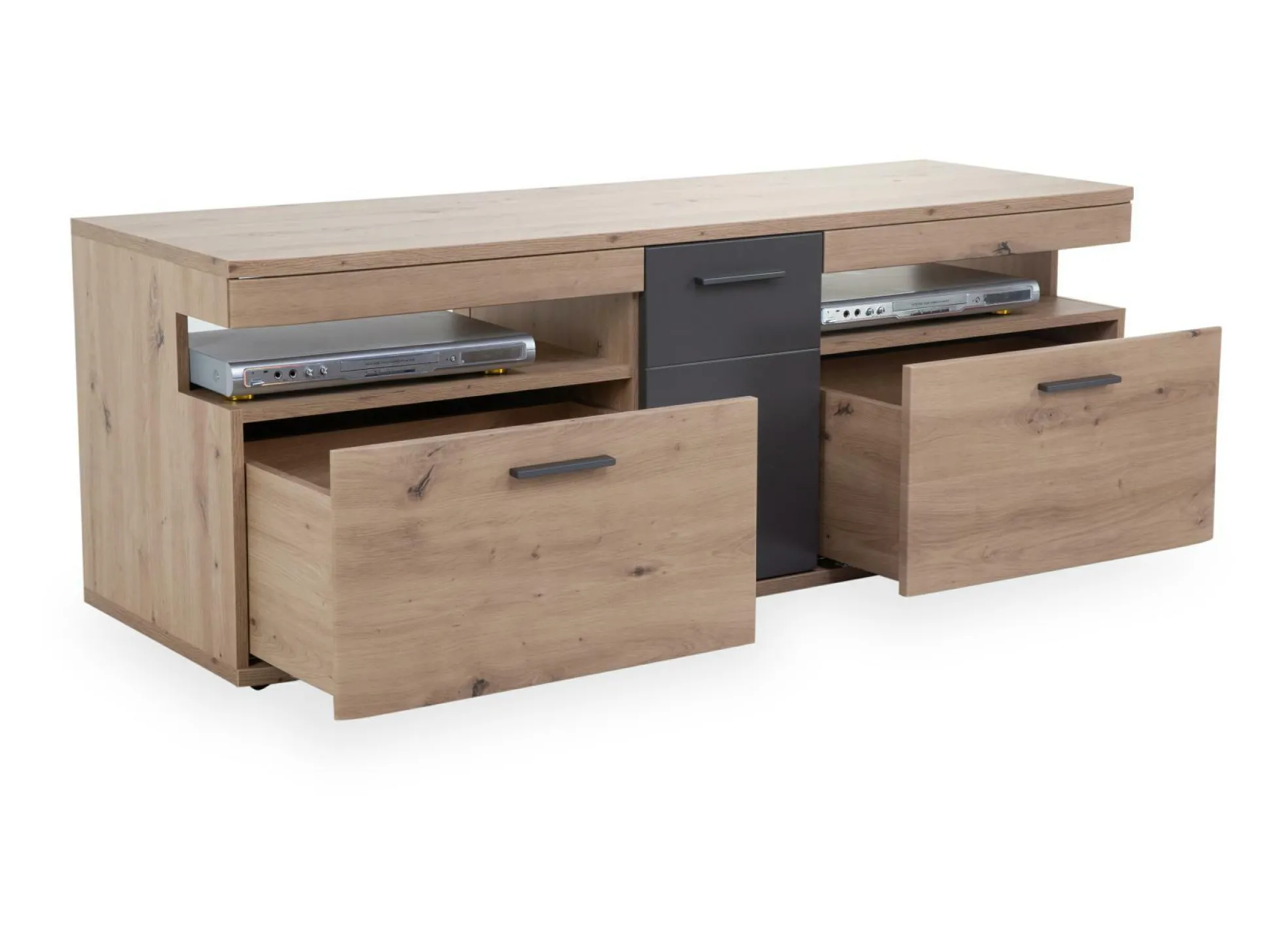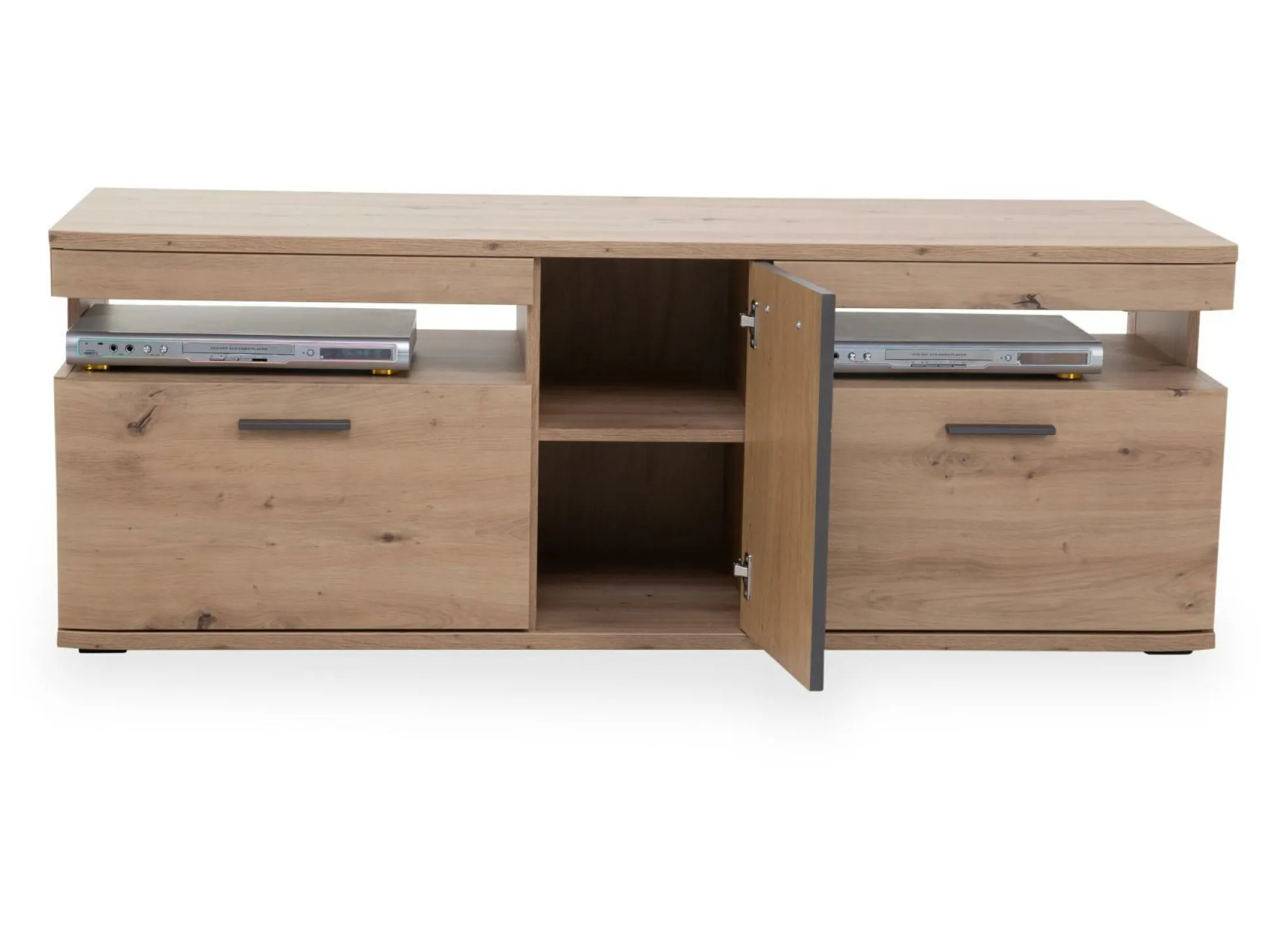 · mit einer Tür, zwei Schüben und zwei offenen Fächern