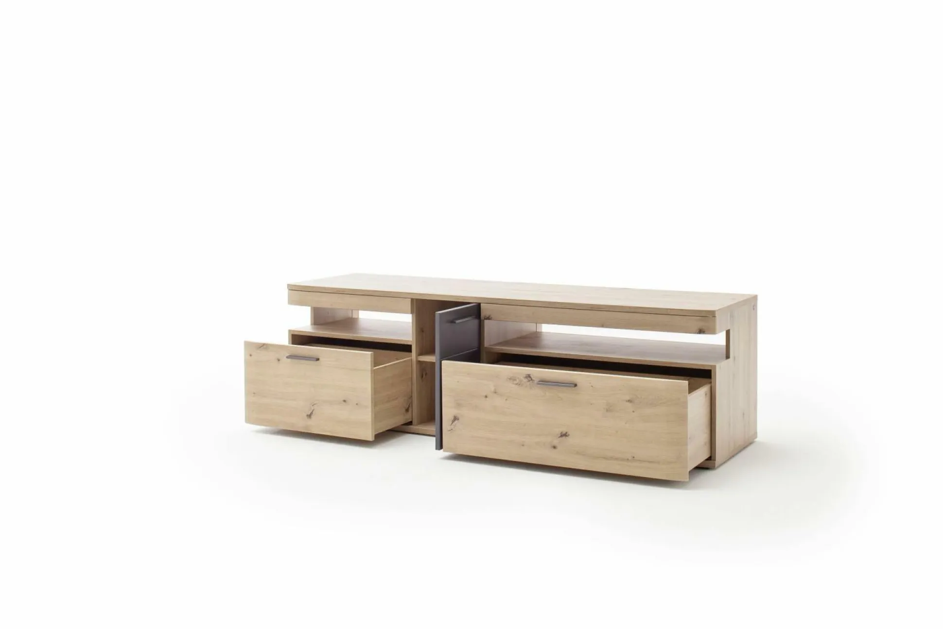 · mit einer Tür, zwei Schüben und zwei offenen Fächern