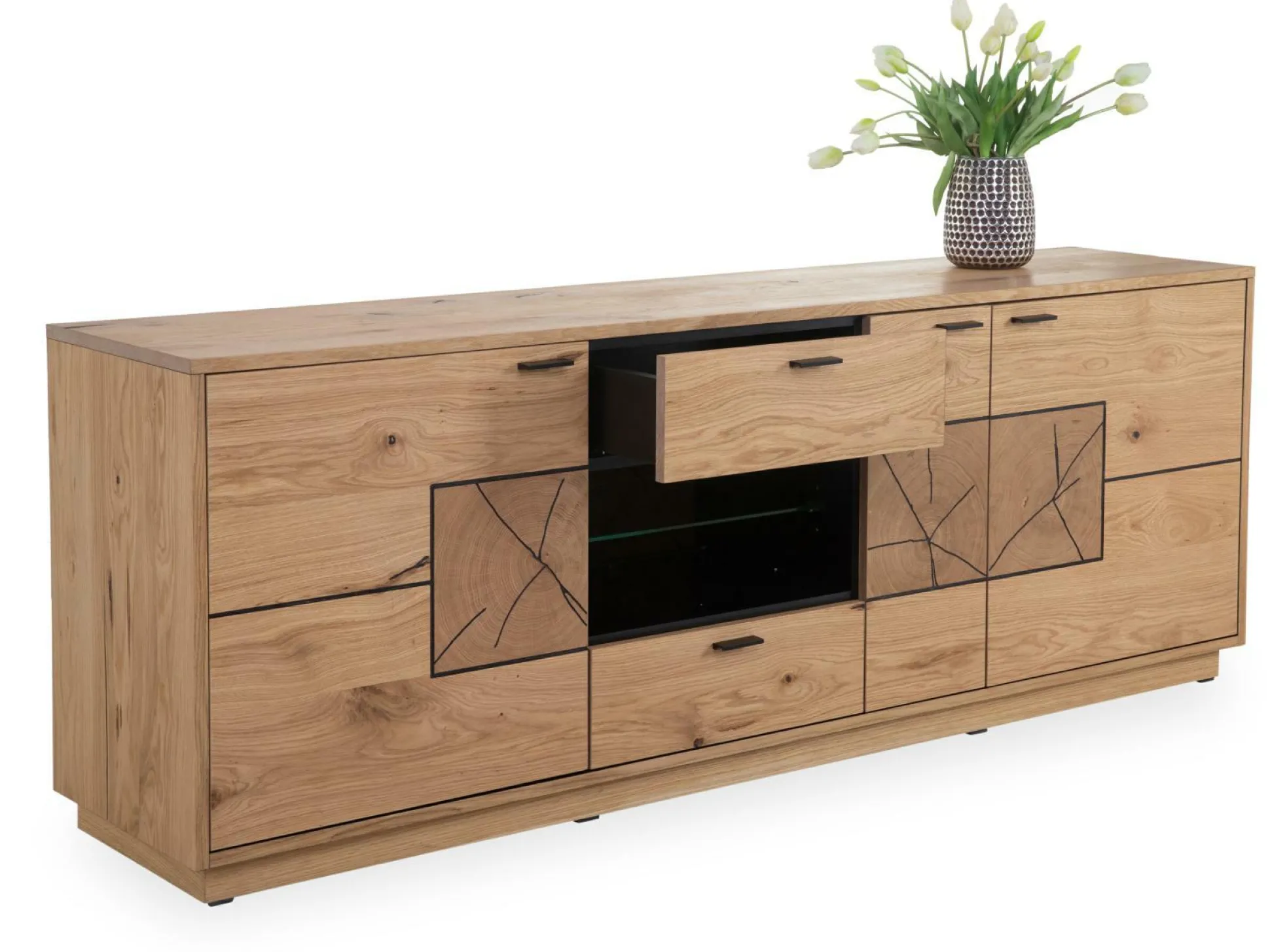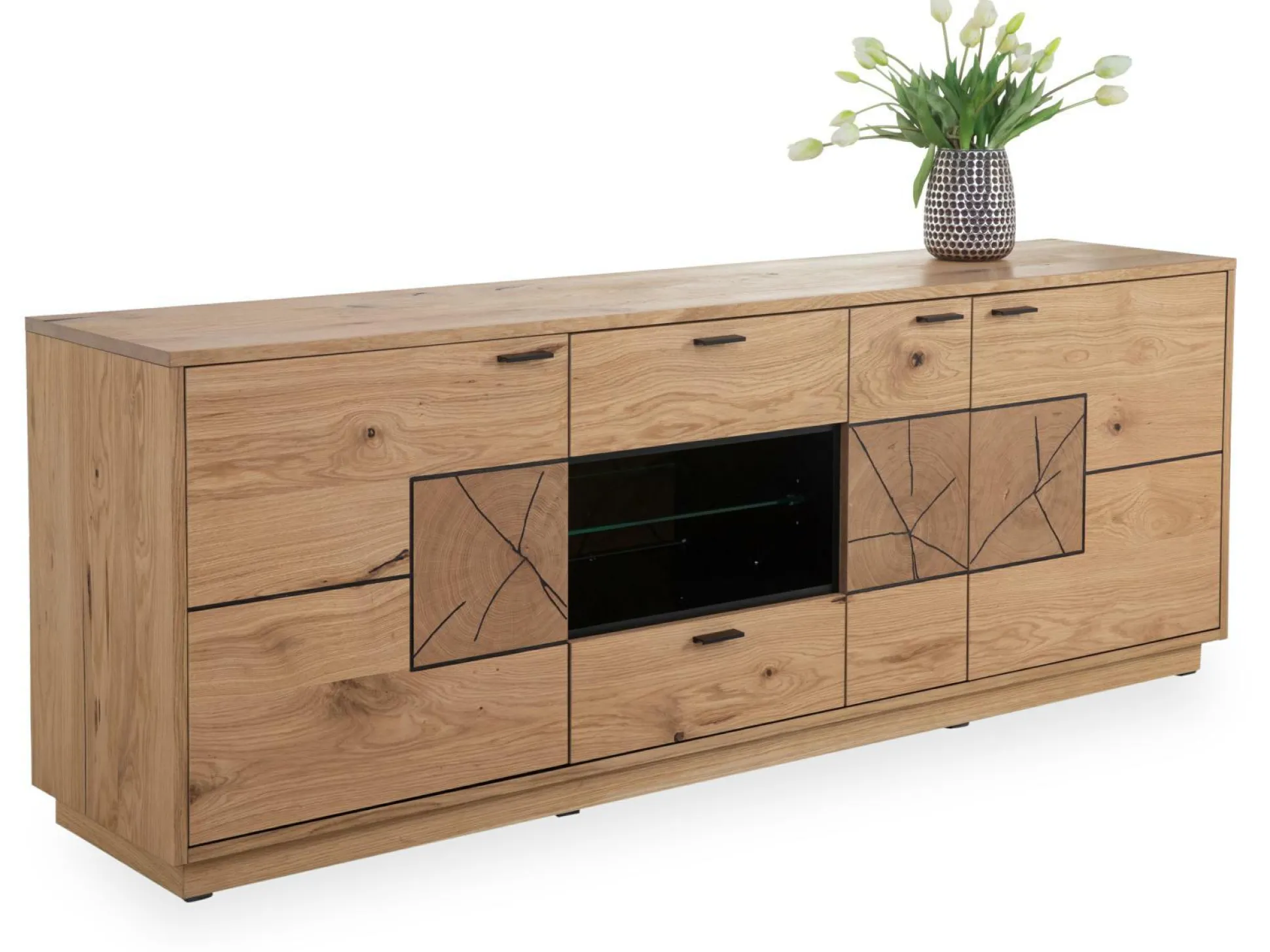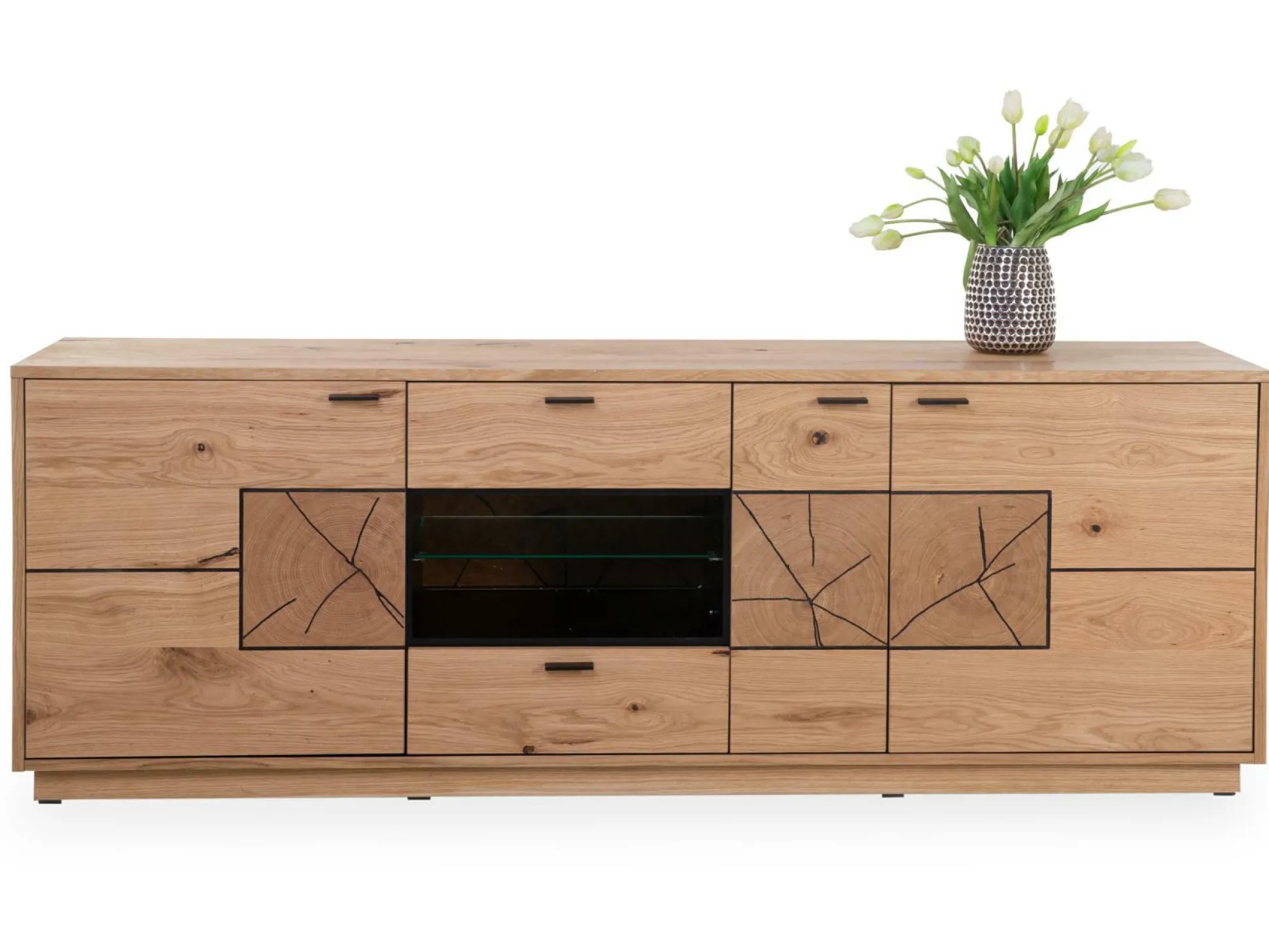 · Front: Wildeiche furniert geölt mit Hirnholzapplikationen