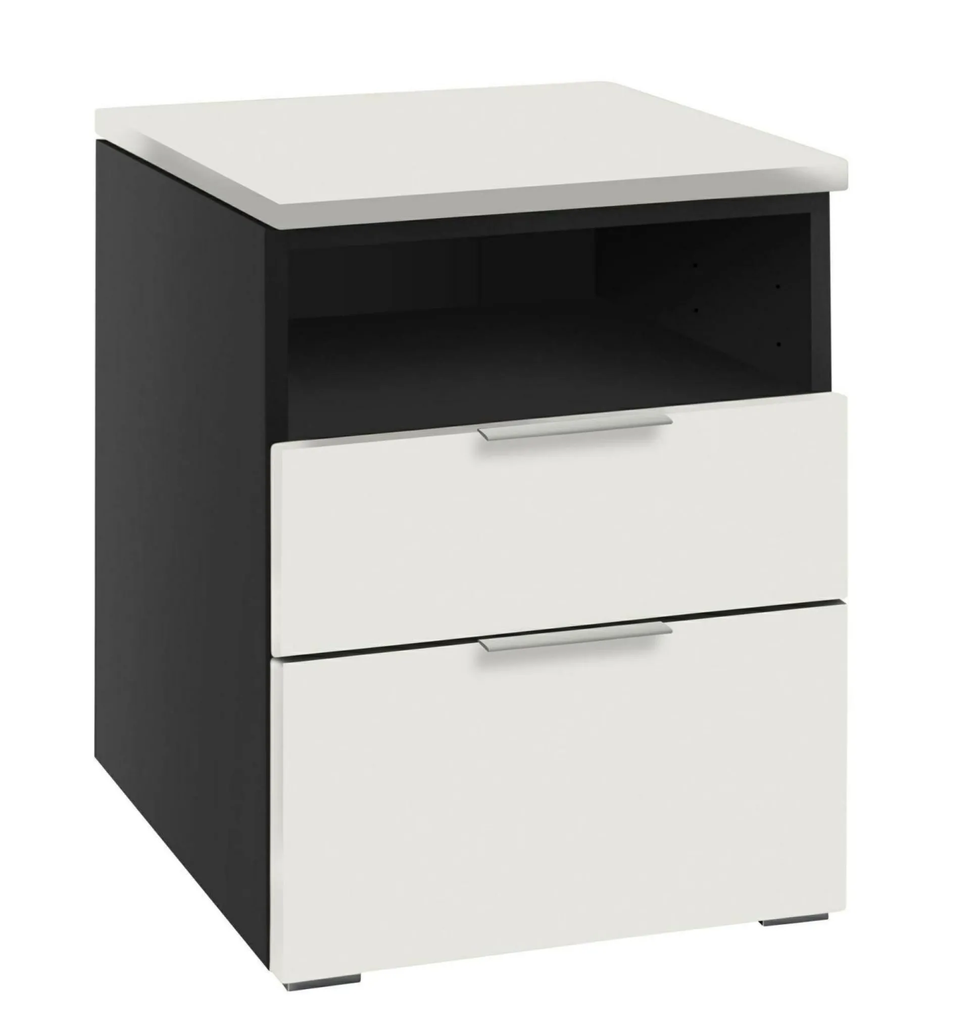 · Nachttisch mit einem Ablagefach und 2 Schubladen (gedämpfter Selbsteinzug) mit je einem Stauraum von 38x39x8 cm und 38x39x13 cm.