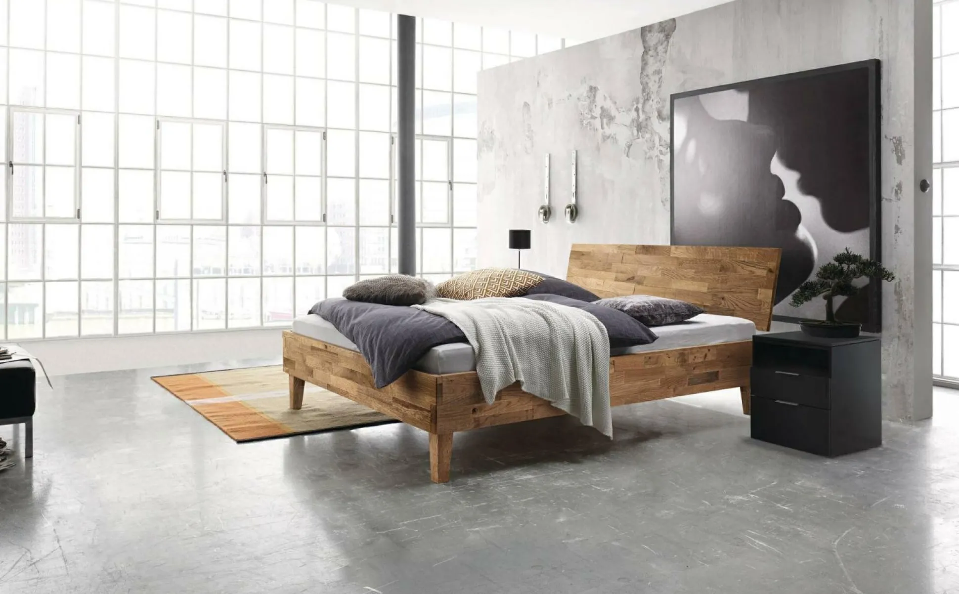 · Nachttisch mit einem Ablagefach und 2 Schubladen (gedämpfter Selbsteinzug) mit je einem Stauraum von 38x39x8 cm und 38x39x13 cm.