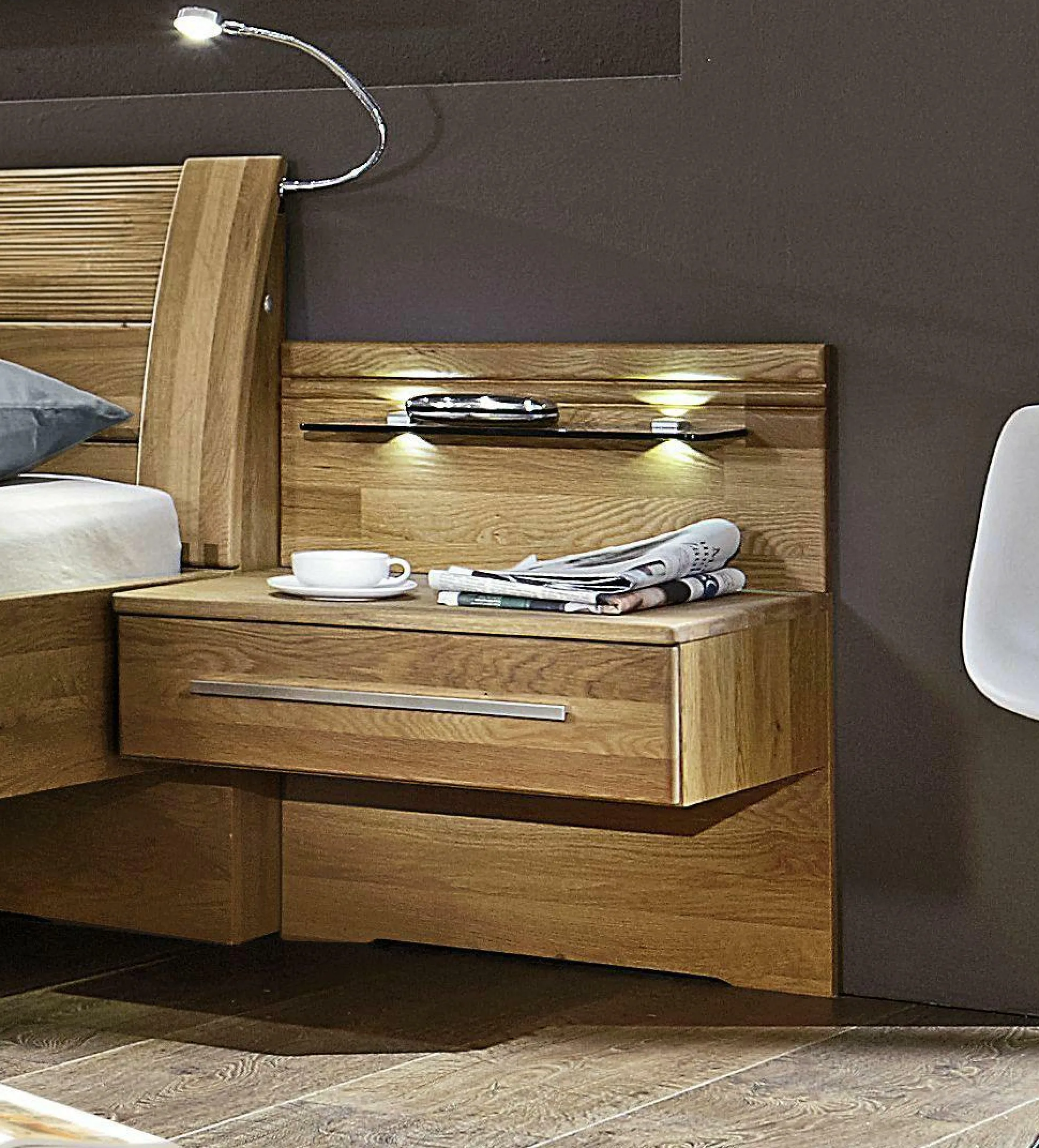 Erleben Sie pure Eleganz mit der Nachtkommode PAOLO von MONDO. Hergestellt aus teilmassiver Erle, vereint sie zeitlose Schönheit mit praktischer Funktionalität. Der schwebende Auszug bietet Platz für Ihre persönlichen Gegenstände und verleiht dem Design eine moderne Note. Die Griffleiste in Chrom glänzend setzt stilvolle Akzente und rundet das ansprechende Erscheinungsbild ab. Auf Wunsch können Sie die Kommode mit einem Nachtkommoden-Paneel und Beleuchtung ergänzen, um Ihr Schlafzimmer in ein wahres Wohlfühlparadies zu verwandeln. Erleben Sie zeitlose Eleganz und praktische Raffinesse mit der stilvollen Nachtkommode PAOLO. Entdecken Sie weitere Möbel des Schlafzimmer-Programms PAOLO von MONDO und gestalten Sie Ihr Zuhause harmonisch und einheitlich.