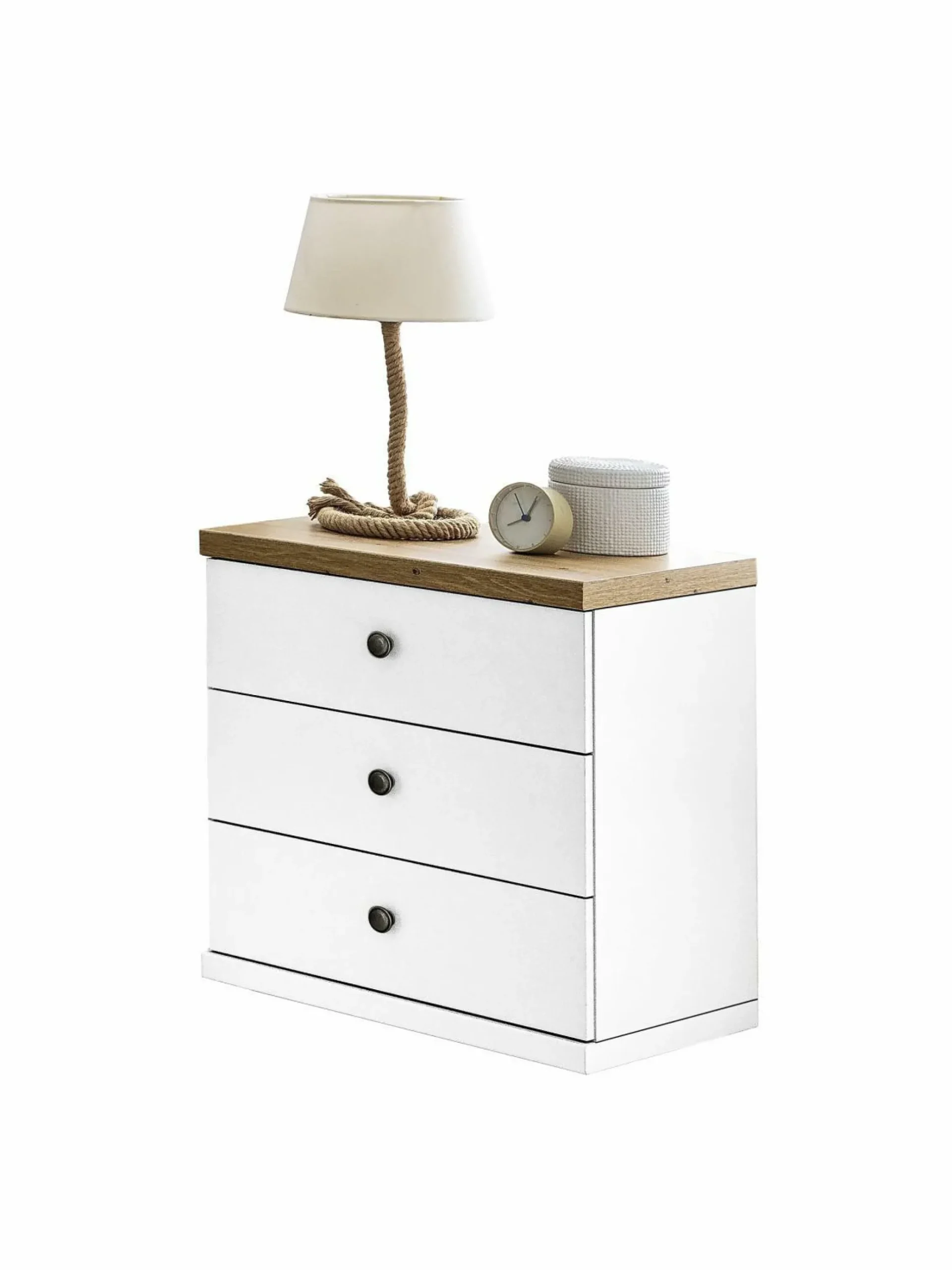Die Nachtkommode AALBORG von SANSIBAR ist nicht nur eine praktische Aufbewahrungsmöglichkeit, sondern sie punktet auch mit einzigartigem Design. Der Korpus und die Front strahlen in einem eleganten Weiß. Die Deckplatte überzeugt mit einem Bianco Eichen Dekor und erzeugt so eine gemütliche Atmosphäre. Dank der drei großzügigen Schubladen bietet sie ausreichend Platz für Ihre persönlichen Gegenstände und verleiht Ihrem Schlafzimmer einen Hauch von Raffinesse. Entdecken Sie die gesamte Schlafzimmerkollektion AALBORG von SANSIBAR, die viele Facetten und ihren ganz eigenen Charme hat.