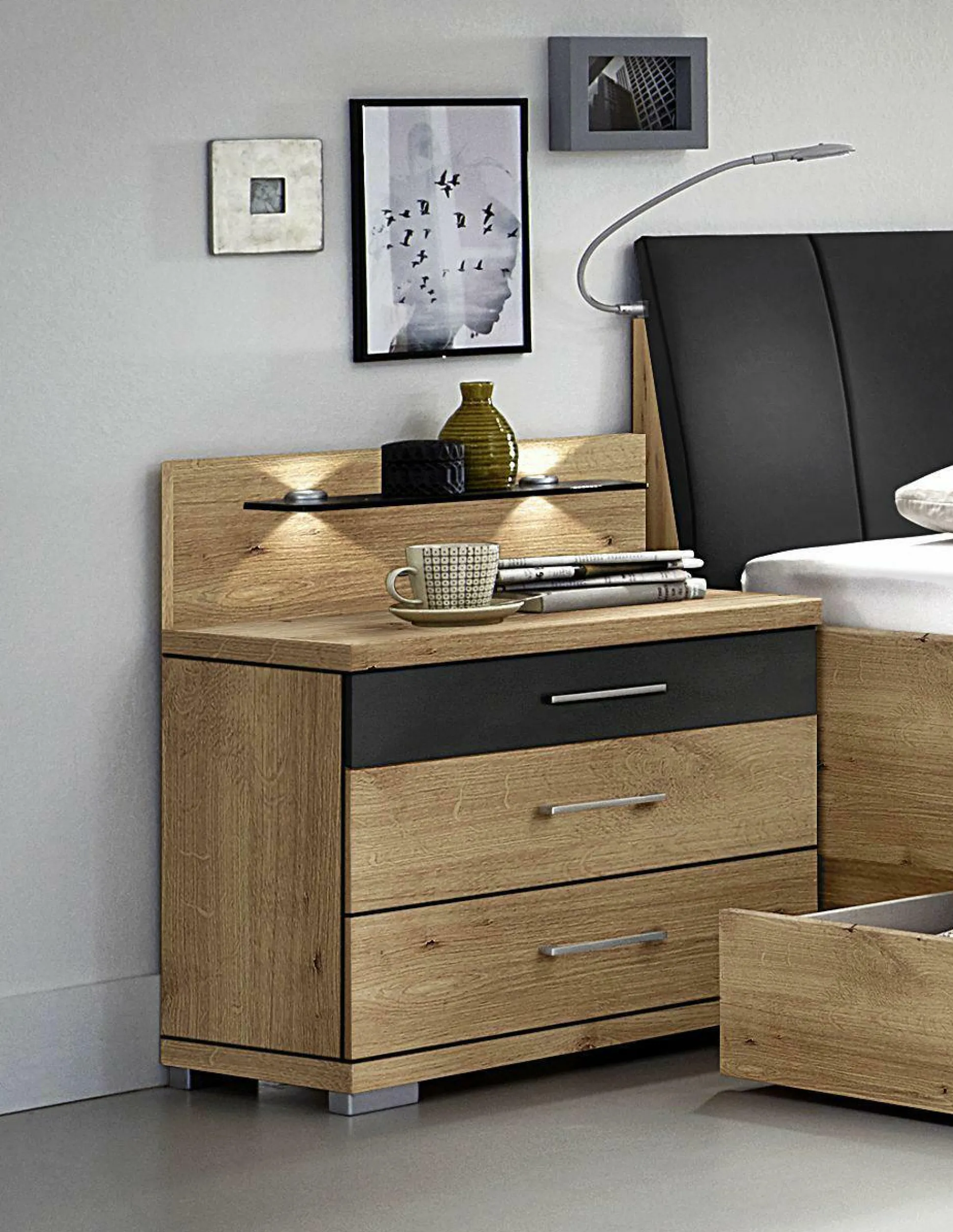 · Auf Wunsch: LED-Beleuchtung, Nachtkommoden-Paneel-Paar