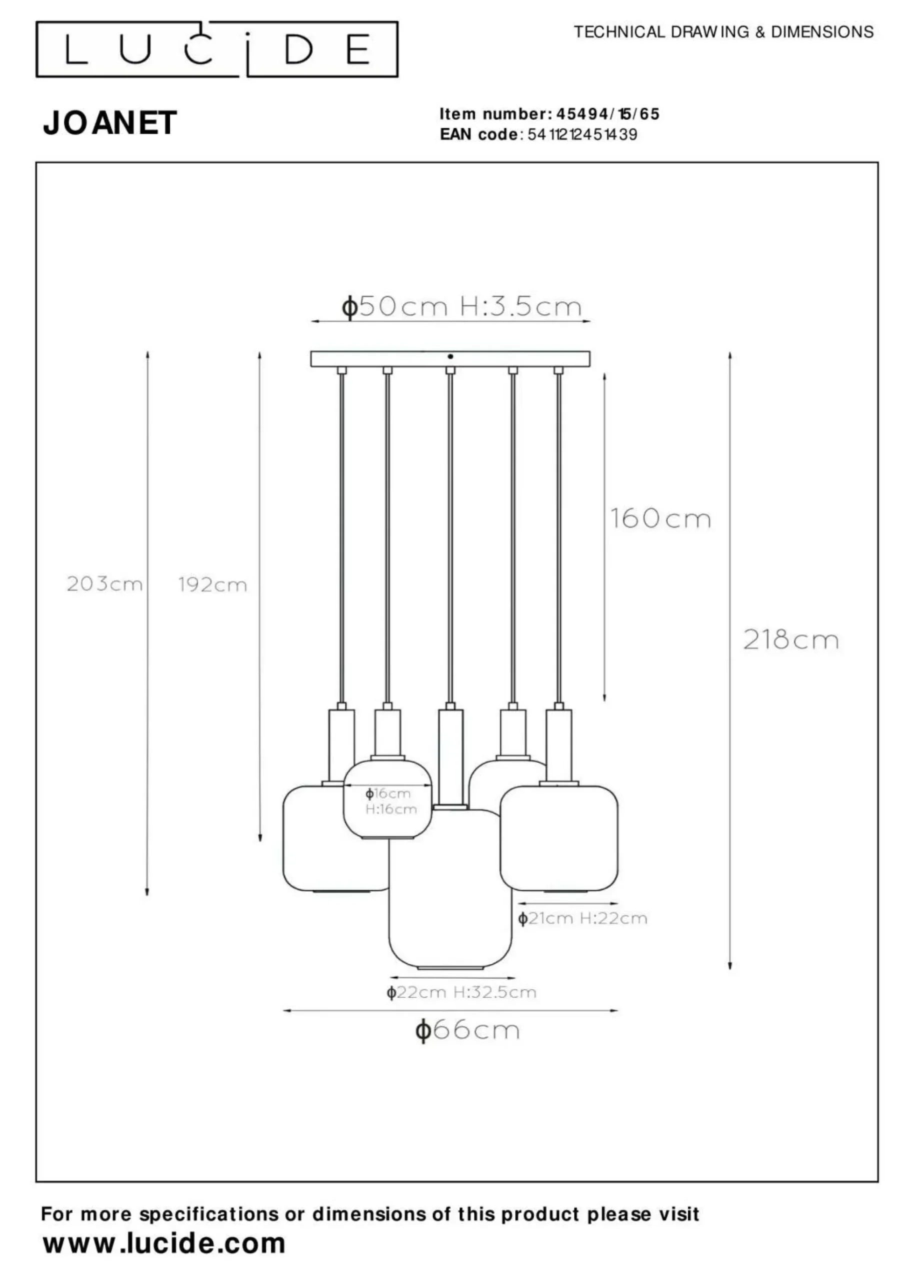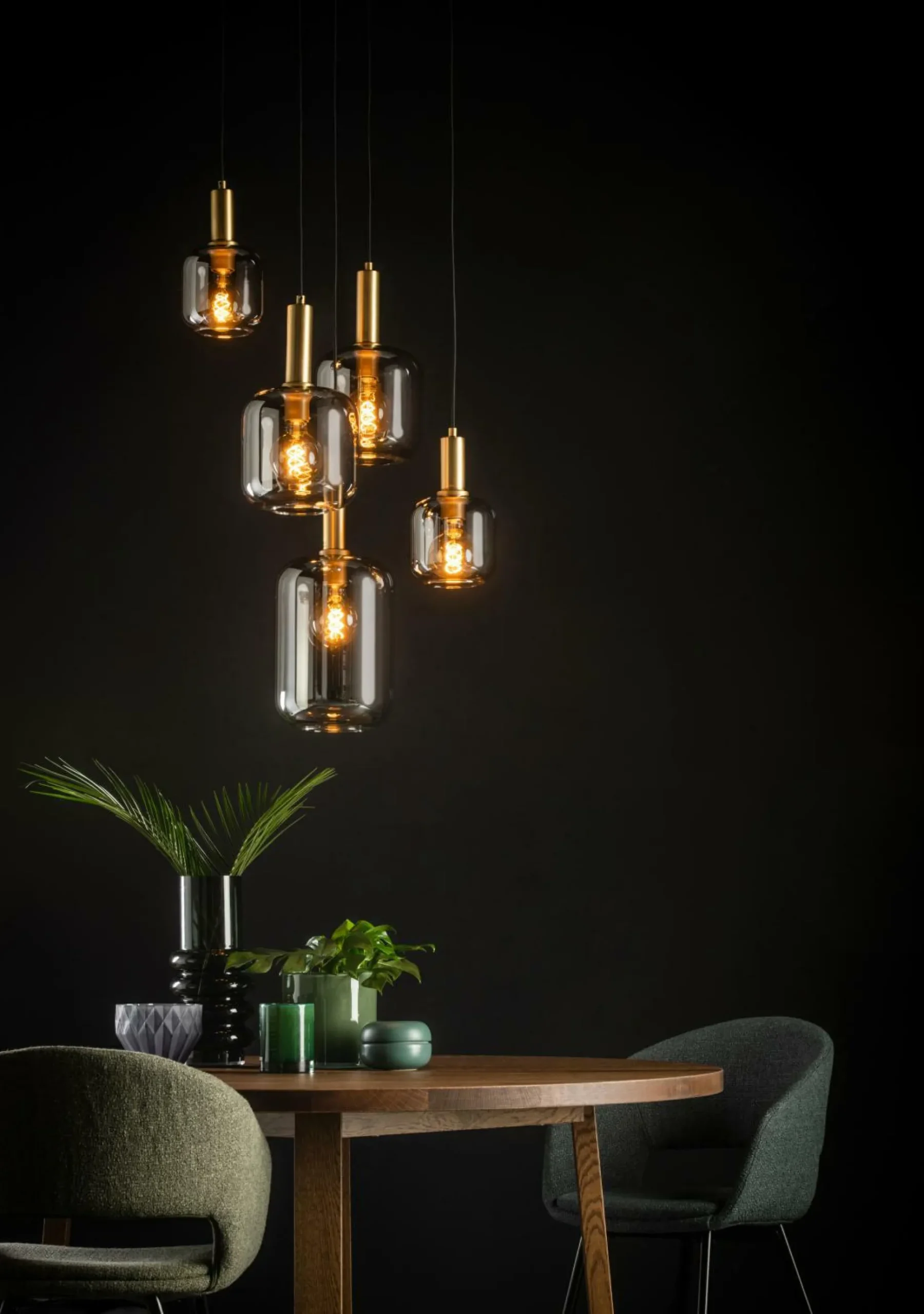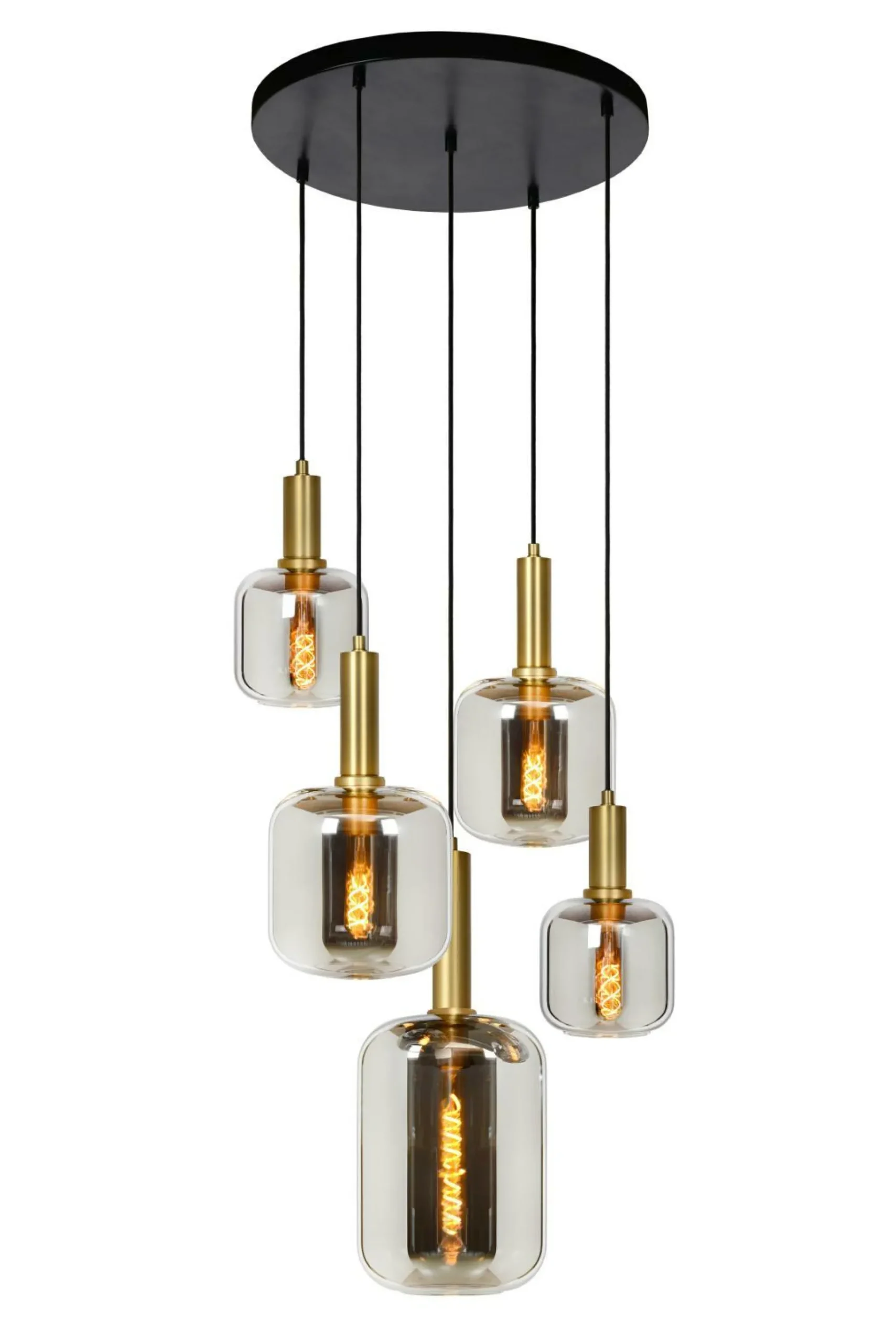 · Die Eleganz einer Wendeltreppe und das luxuriöse Aussehen eines Kristallleuchters. Dies kombiniert die Joanet Pendelleuchte in einer Beleuchtung mit einem anmutigen Design. Mit ihren unterschiedlichen Größen in unterschiedlichen Höhen erzeugen die fünf Lampen ein faszinierendes Lichtspiel. Die Lichtpunkte – vorzugsweise mit einer Glühfadenlampe – sind mit echtem, hochwertigem Glas umhüllt. Für einen stilvollen und modernen Look. Sie können Joanet auch einfach an einen Dimmer anschließen, sodass Sie jederzeit die Atmosphäre bestimmen können.