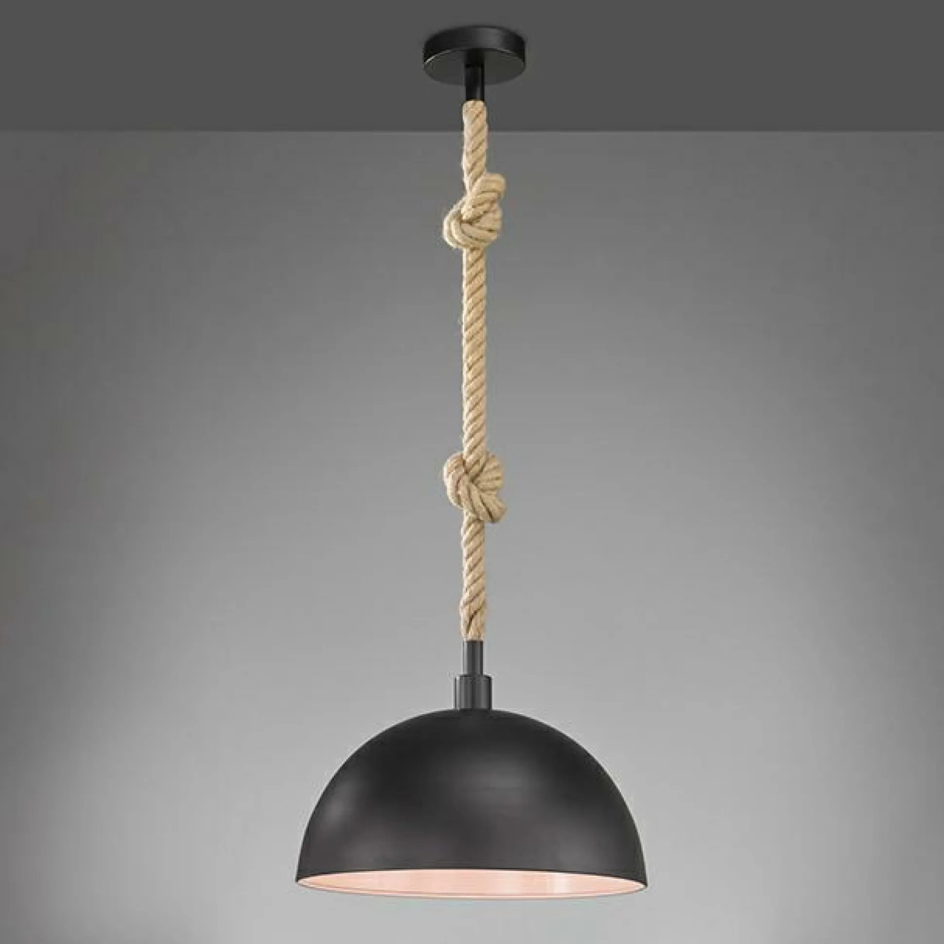· RUBUSTE VERARBEITUNG: Die Pendellampe ist aus einer modernen Materialkombination gearbeitet. Der Lampenschirm besteht vollständig aus Metall, das Seil aus Hanf in naturfarben.