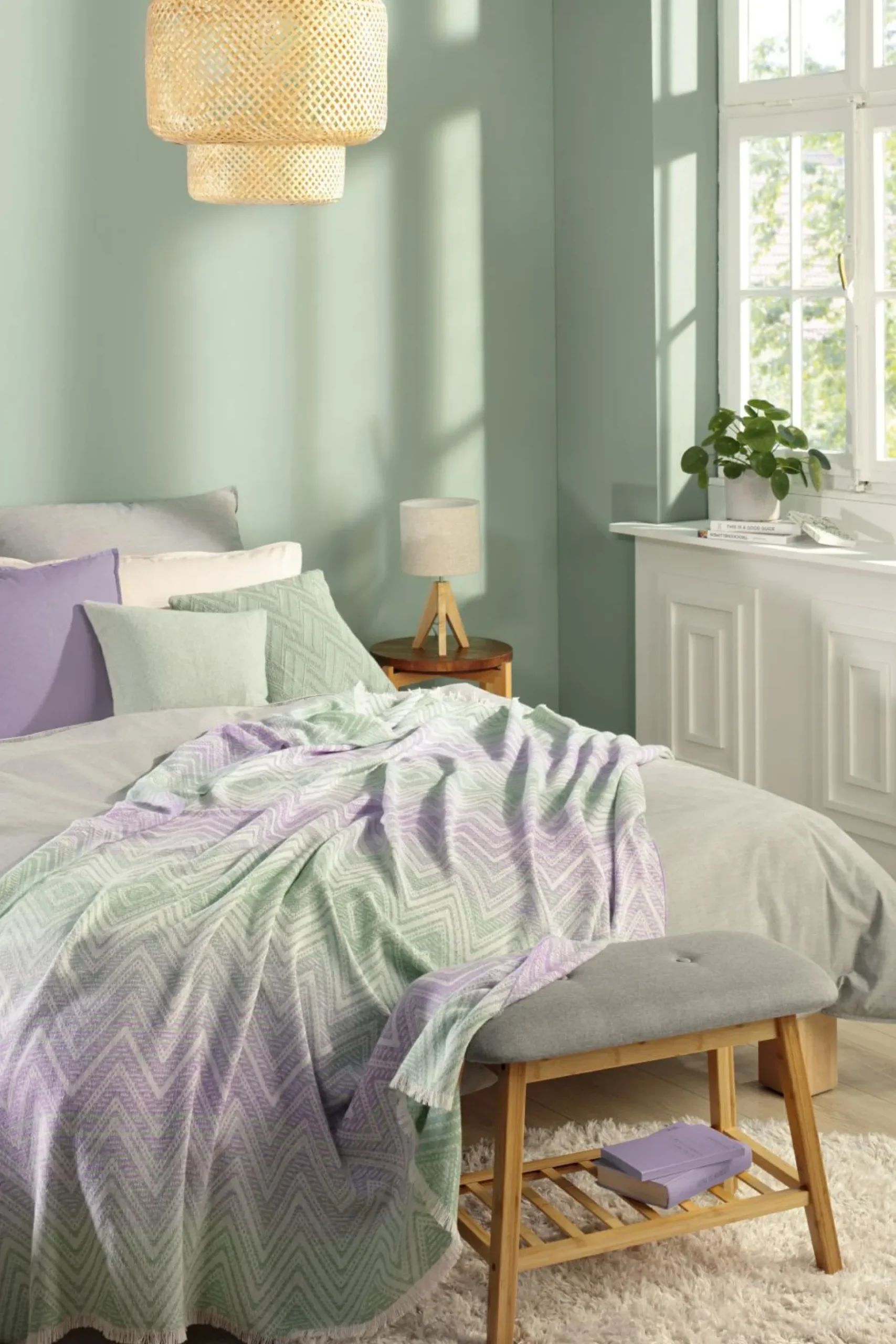 · Der hohe Baumwollanteil und das geringe Gewicht machen dieses Plaid zu einer perfekten Sommerdecke, die besonders hautsympathisch und weich ist. Auch optisch belebt das Plaid in Wohndeckengröße: Farbige Streifen aus frischem Apfelgrün und pastelligem Flieder sind mit einem feinen Zickzackmuster unterlegt und kurze Fransen sorgen für einen lässigen Look.