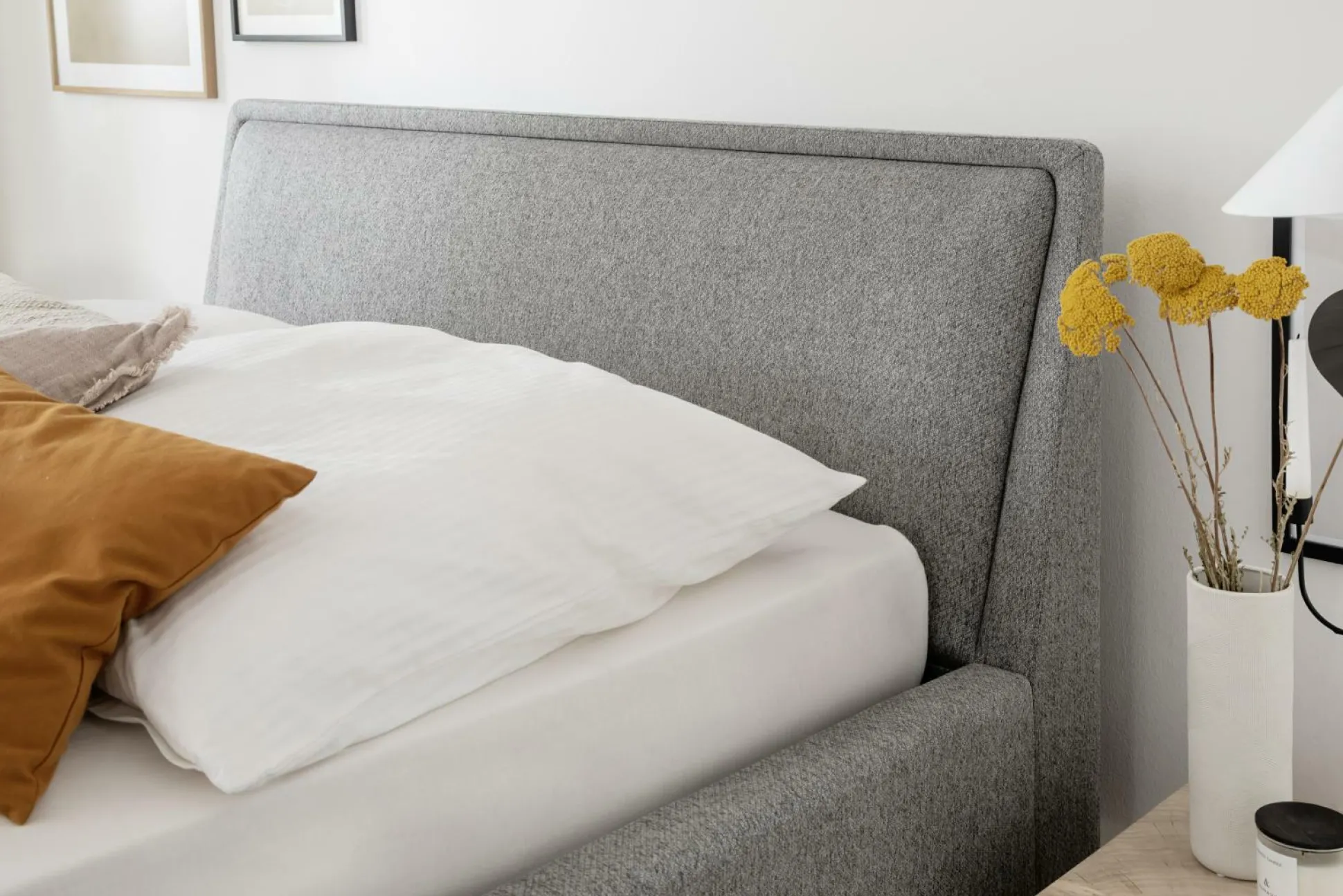 · Polsterbett mit glatten Kopfteil in Kissenoptik das sehr fein ins Kopfteil mit integriert ist, inkl. Bettkasten und seitlich zu öffnende Federholzrahmen 28 Leisten / Starr / mit Härtegradverstellung