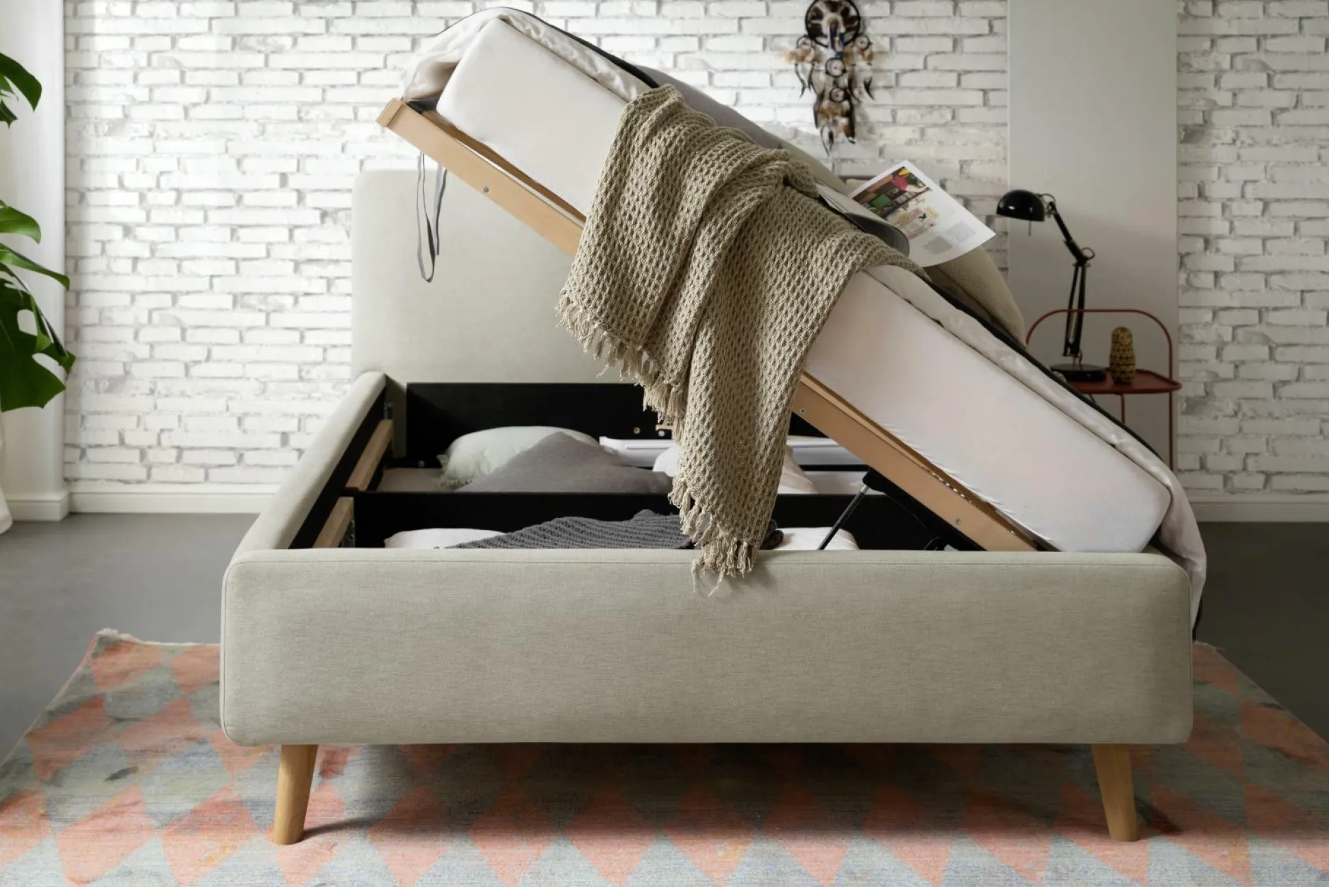 · inkl. belüftetem Bettkasten und seitlich zu öffnenden Federholzrahmen mit 28 Leisten inkl. Härtegradverstellung, Mattis