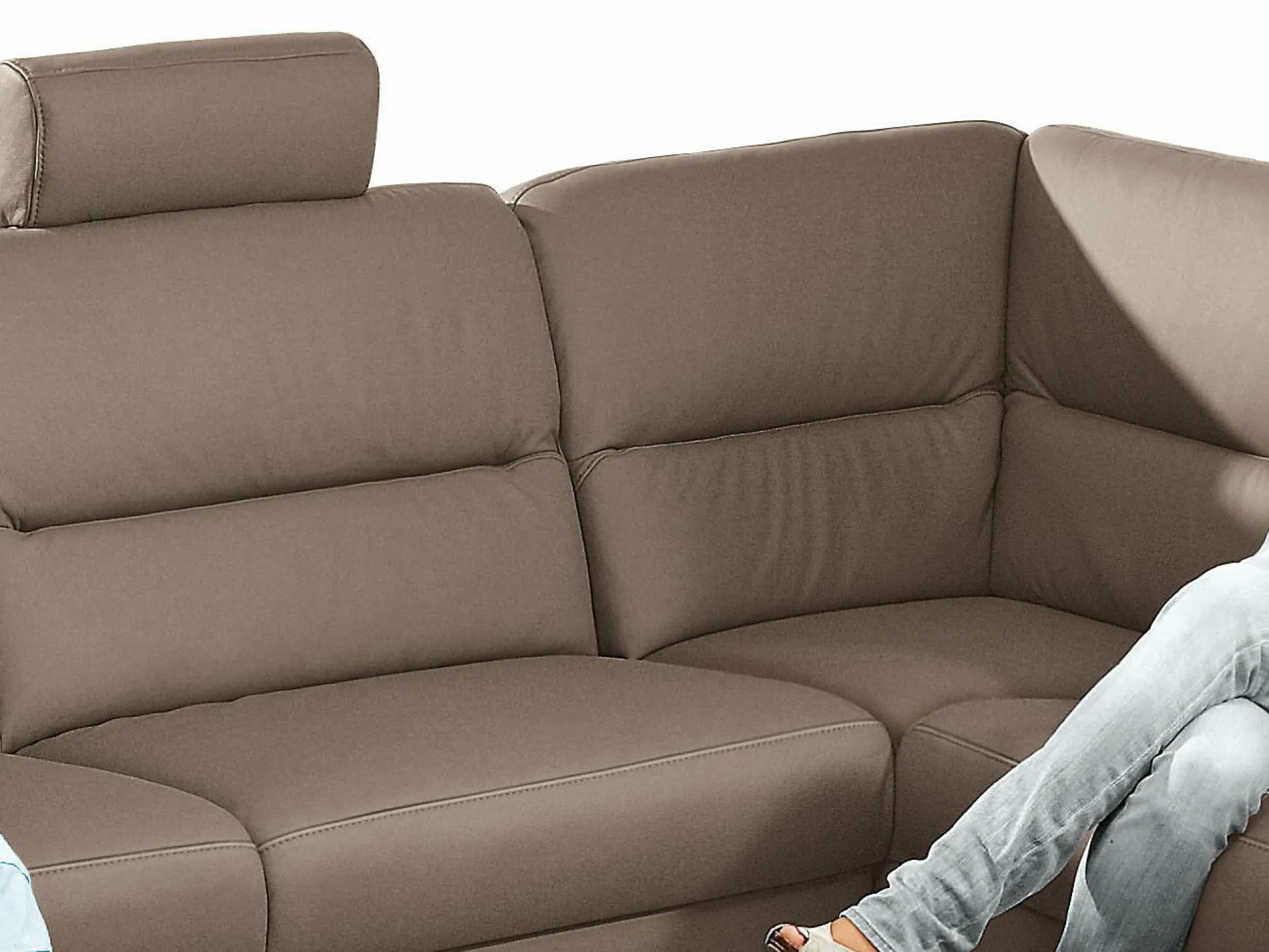 Das dreiteilige Sofa besteht aus einem festen, rechts vorstehendem Abschlussrecamiere, einem Zwischenelement und einem offenen Abschlussteil mit Ecke auf der rechten Seite. Besonders praktisch ist das Stauraumfach unter dem Abschlussteil, denn hier ist Platz für Decken, Kissen und vieles mehr. Der braune Longlife canyon Bezug des Ecksofas besteht aus Echtleder und ist nicht nur handschuhweich, er sorgt außerdem in jedem Raum für eine wohnliche und gemütliche Atmosphäre.Die Sitzhöhe des Sofas misst ca. 45 cm, alle Sitze sind in der mittleren Sitzhärte Superlastic med gefertigt.