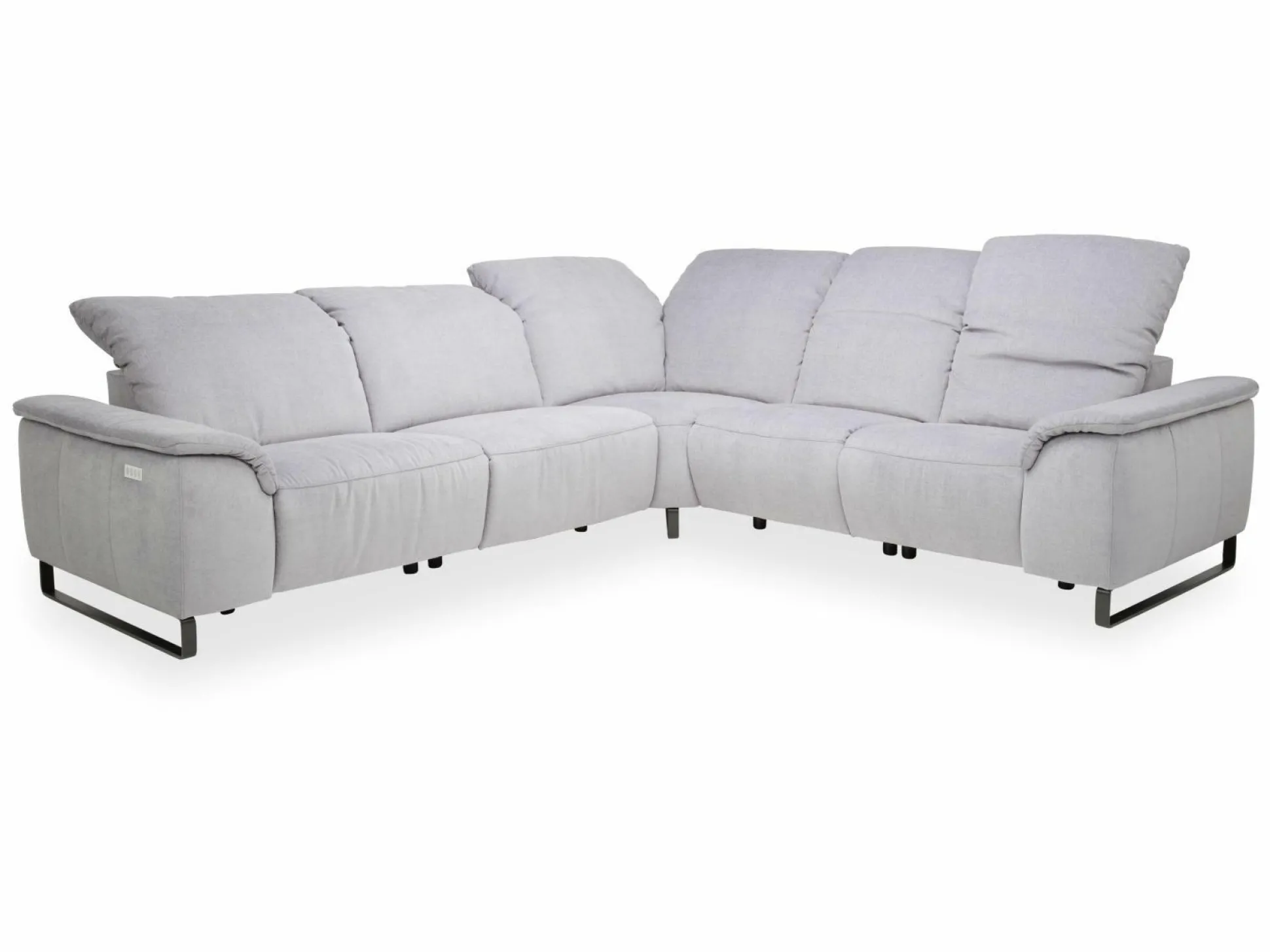 Dessin: Stoffgr.8 Easy Care platin 100% PES bestehend aus: 1,5 Sitzer medium AT vors.li.-4577 1,5 Sitzer medium o. AT -4576 Spitzecke groß -7110 1 Sitzer o.AT -4560 1 Sitzer AT vorst. rechts -4563 Federkern im Sitz inkl. manuelle Kopfteilverstellung Metallfuß -173 Rücken echt bezogen ohne Relax-Funktion+ Kissen