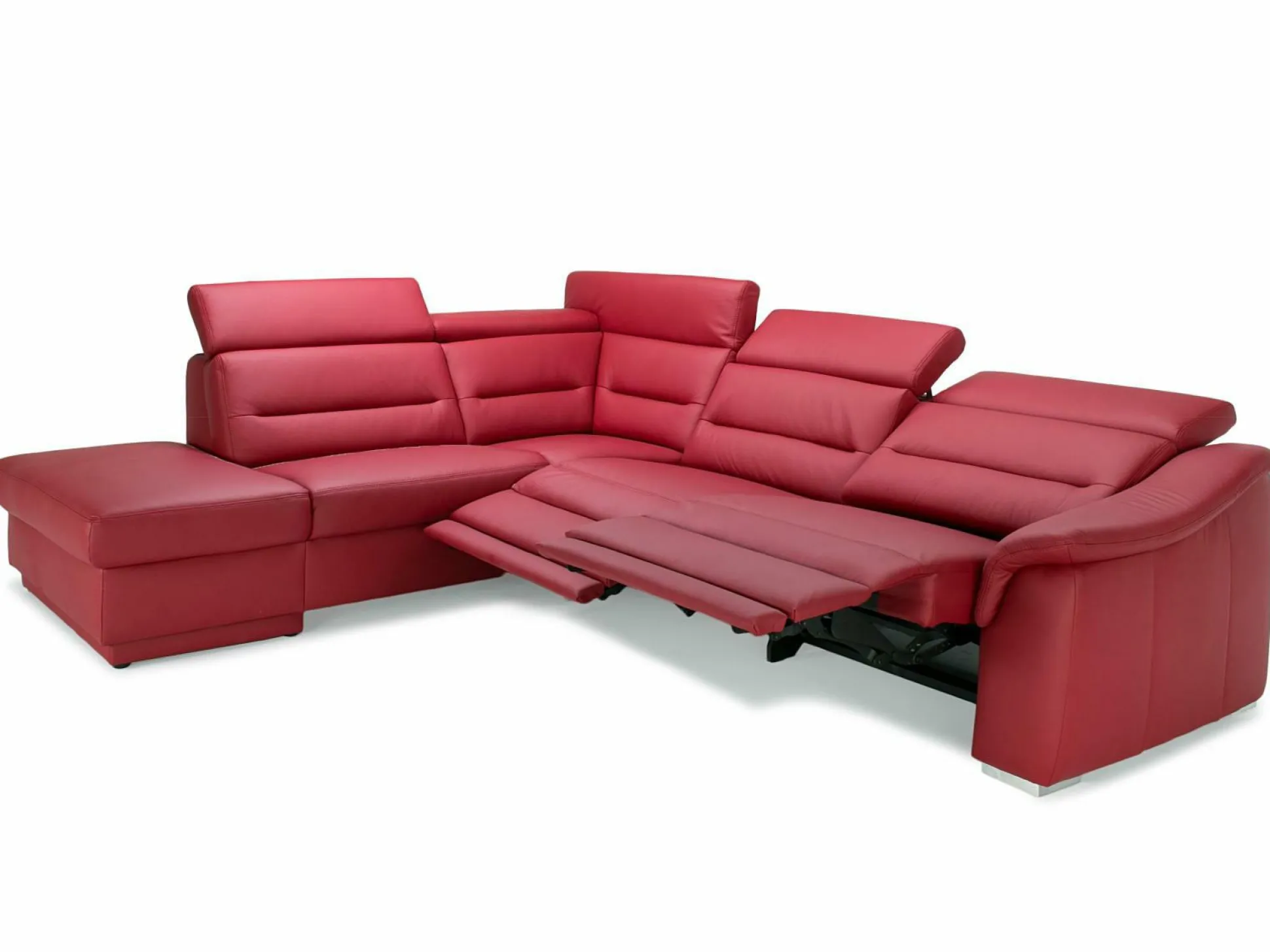 Dessin: Ledergr. Torro rosso (100) Echt Leder bestehend aus: Kombielement 1,5 Sitzer m. Anstell- hocker aufklappbar links -1,5KOGFL, 3 Sitzer AT vorst. rechts -3R, Sitz hochwertiger Kaltschaum Metallfuß Hochglanz Rücken Nessel Auf Wunsch: WallAway-Funkt.+ KV, Comet