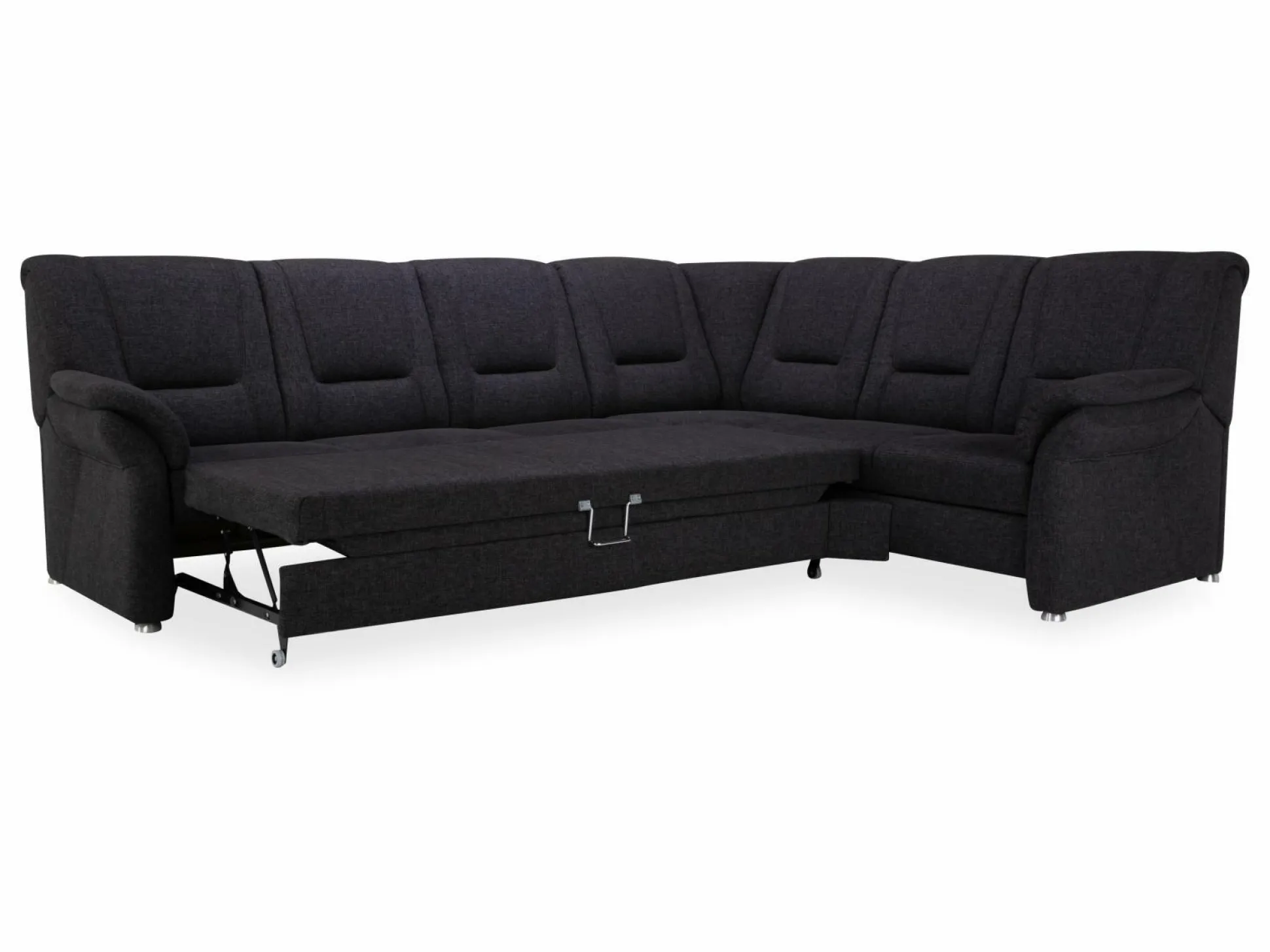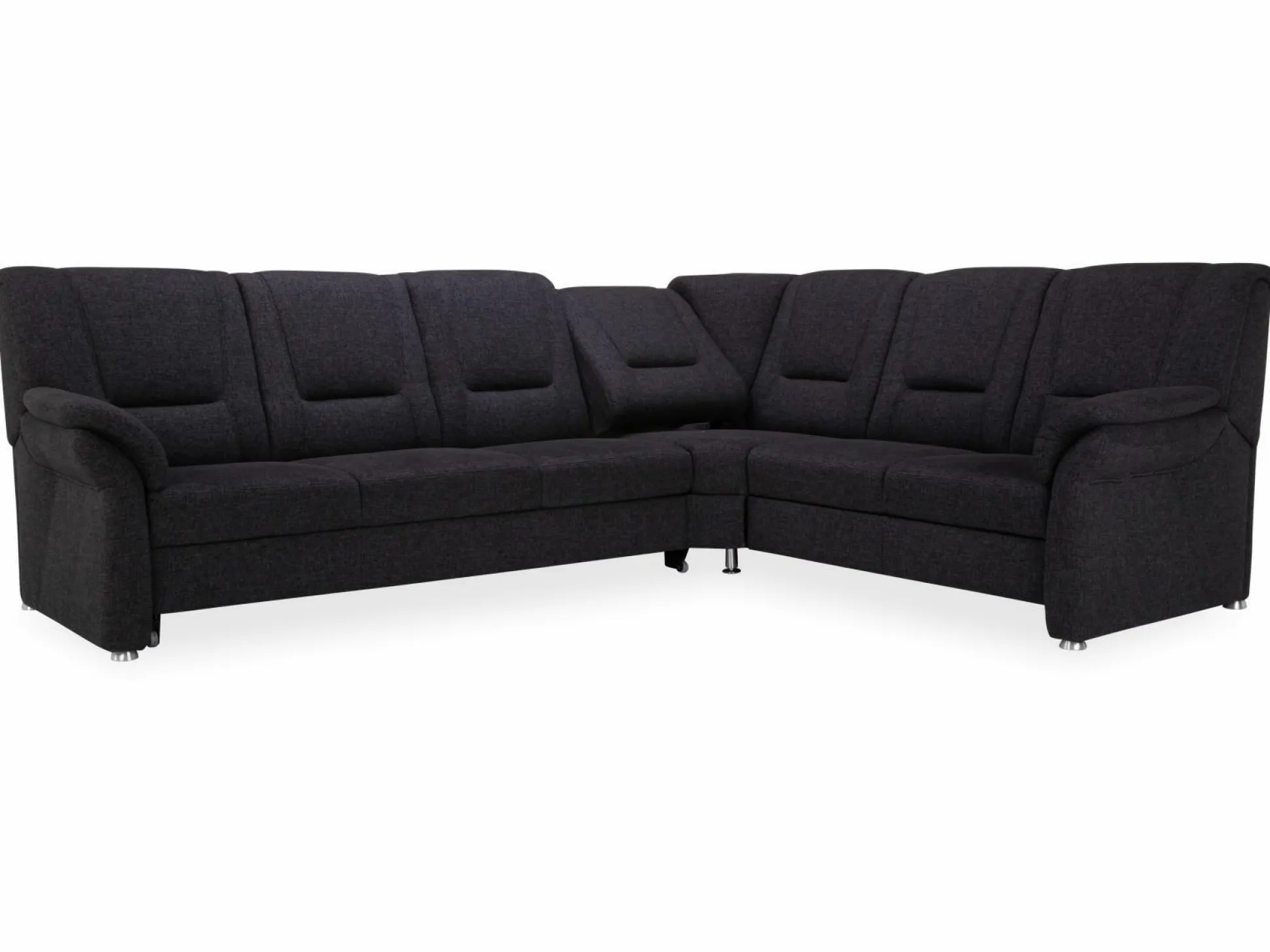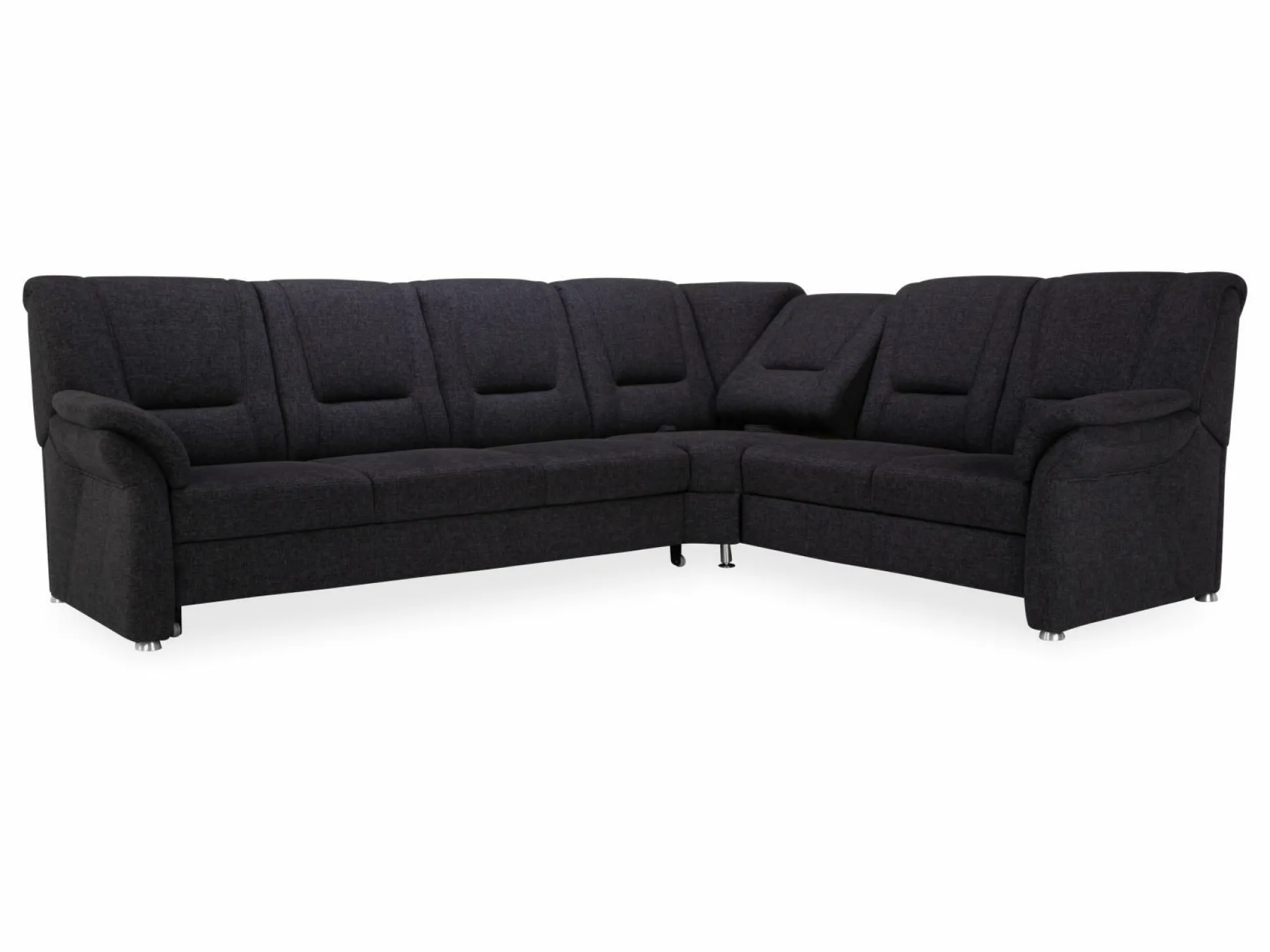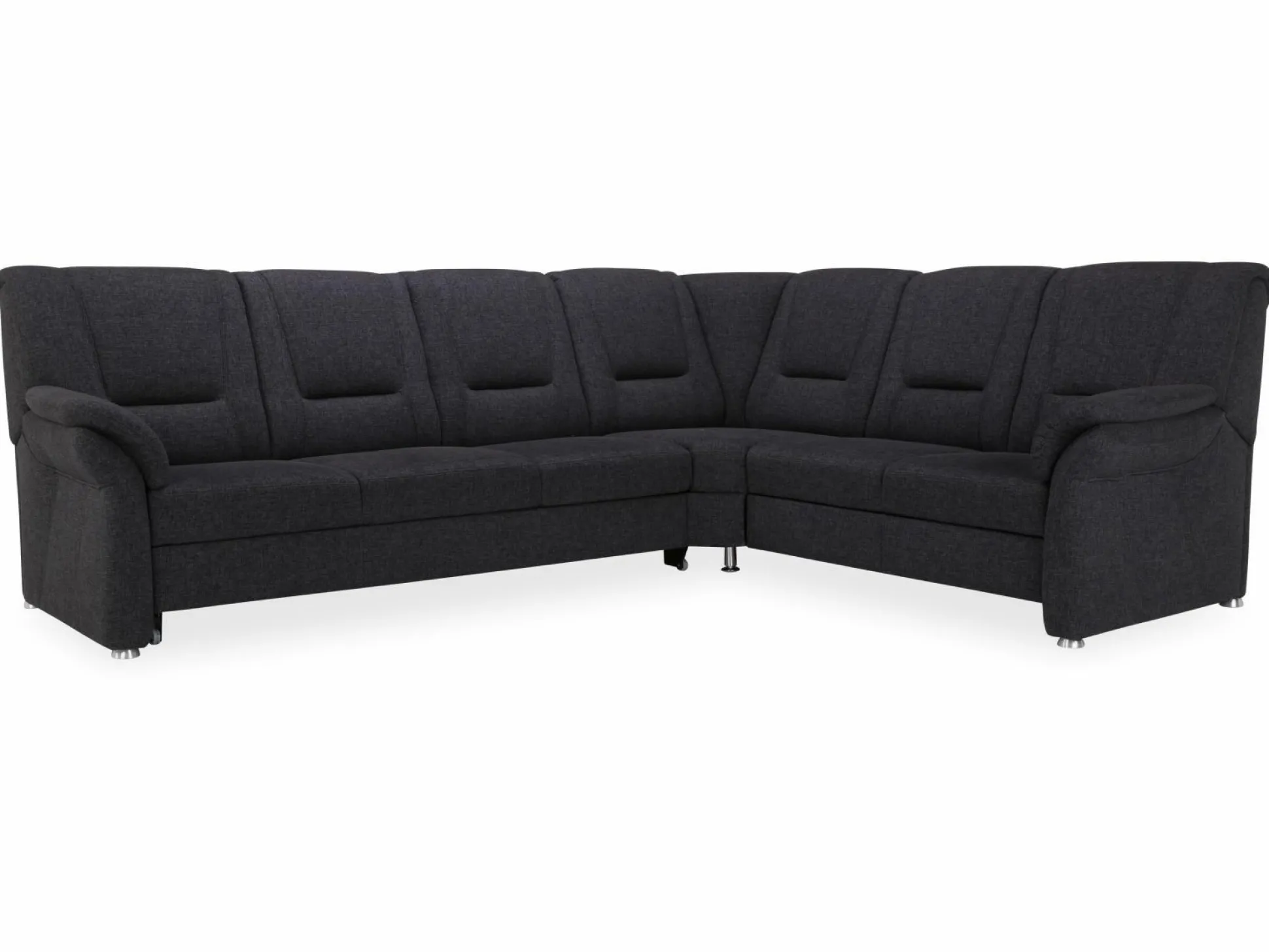Polsterecke Usedom von Systempolster besticht mit Funktionalität und einer modernen und attraktiven Gestaltung. Die Sitzecke ist mit einem Stoffbezug in Anthrazit versehen und besteht aus einem 3-Sitzer mit Armteil, vorstehend links, mit Trapezquerschläfer und einer Trapezecke mit Relaxrücken und einem 2-Sitzer mit Bettkasten und Armteil. Durch eine Liegefläche von 126 x 240 cm bietet diese Polsterecke Ihnen ein entspannendes Schlaf- und Erholungserlebnis. Der Superbonell Federkern im Sitz trägt zu diesem angenehmen Sitz- und Schlafgefühl maßgeblich bei. Metallfüße verleihen der Polsterecke einen festen Stand.