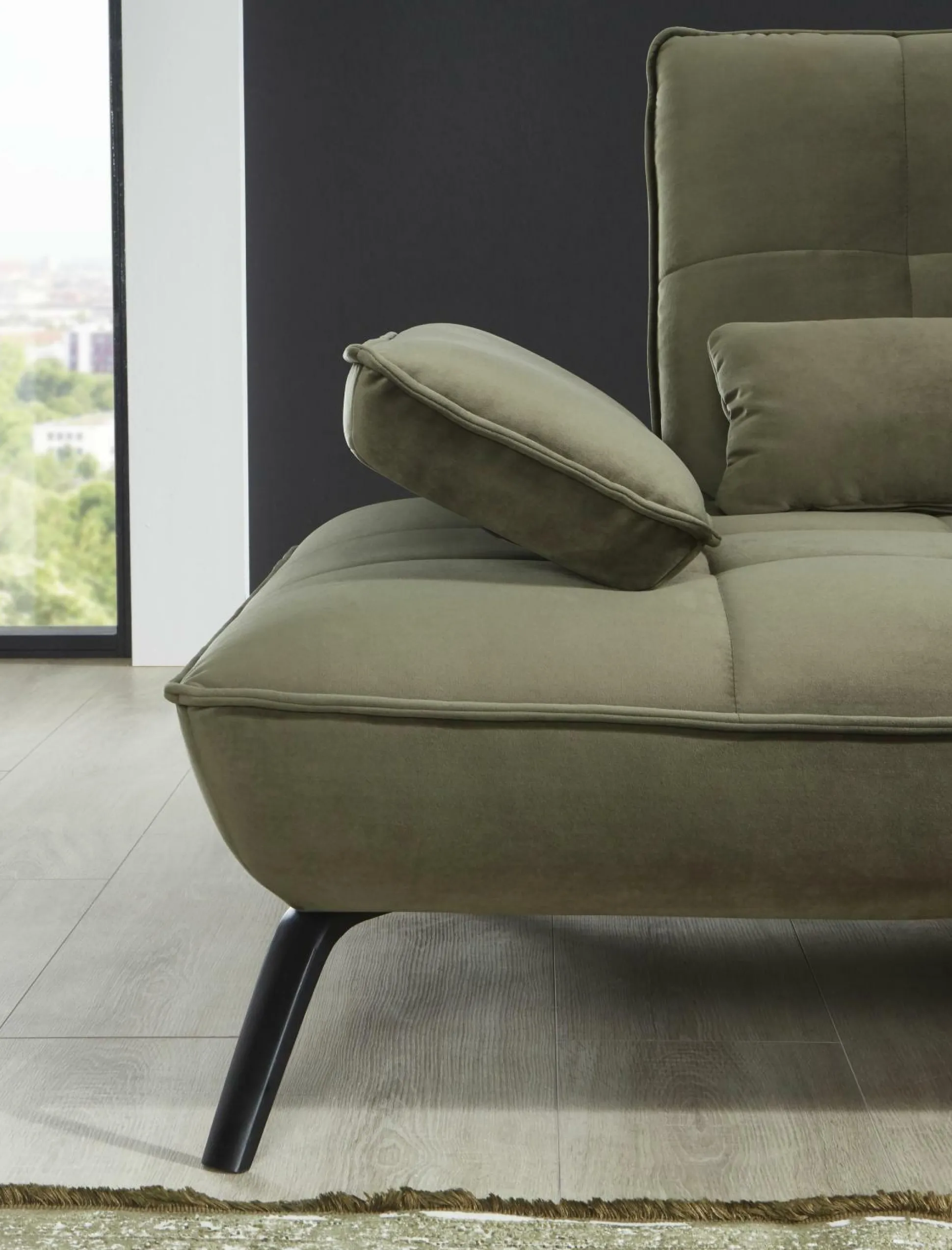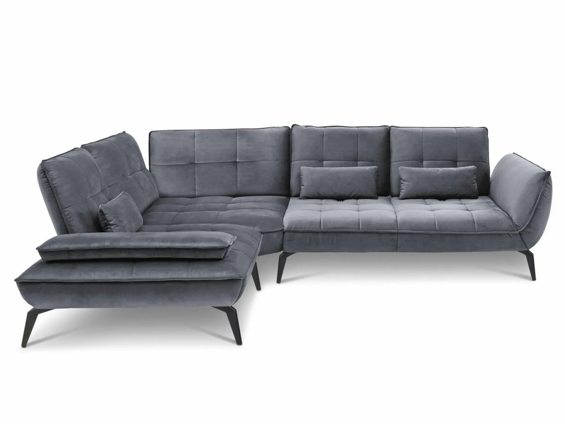 Entdecken Sie mit der Polsterecke TICONA von vito ein Möbelstück, das nicht nur Ihren Wohnraum schmückt, sondern auch höchsten Komfort bietet. Der Bezug aus dem eleganten Stoff Riviera aus 100% Polyester verleiht Ihrem Ambiente einen einladenden Charakter. Die Polsterecke besteht aus einem 1-Sitzer mit linkem Armteil und Schwenkrücken, einer Trapezecke mit festem Rücken und einem 3-Sitzer mit rechtem Armteil und Schwenkrücken. Drei zusätzliche Nierenkissen sorgen für weitere Gemütlichkeit. Die Sitzpolsterung aus PUR-Schaum auf Wellenfedern garantiert angenehmen Sitzkomfort, während der schwarz matte Metallfuß das moderne Design unterstreicht. Die optimale Sitzhöhe von ca. 43 cm sorgt für bequemes Sitzen. Optional können Armteilverstellung, Rückenneigung und zusätzliche Kissen hinzugefügt werden. Mit der Polsterecke TICONA erhalten Sie ein Stück zeitlose Eleganz und zugleich einzigartigen Komfort für Ihr Zuhause.