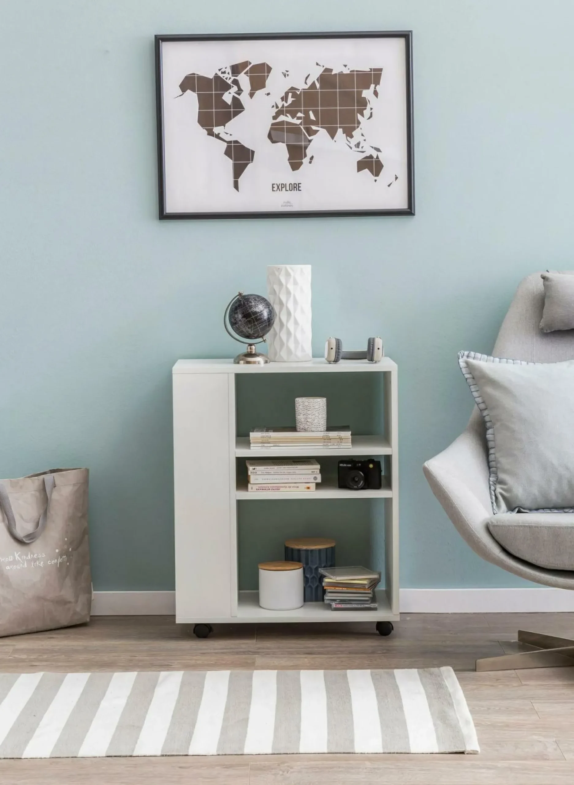 · Mobiler Helfer – Regale sind in jeder Wohnung vertreten doch nur selten ist ein Regal so mobil wie seinen Rollen.