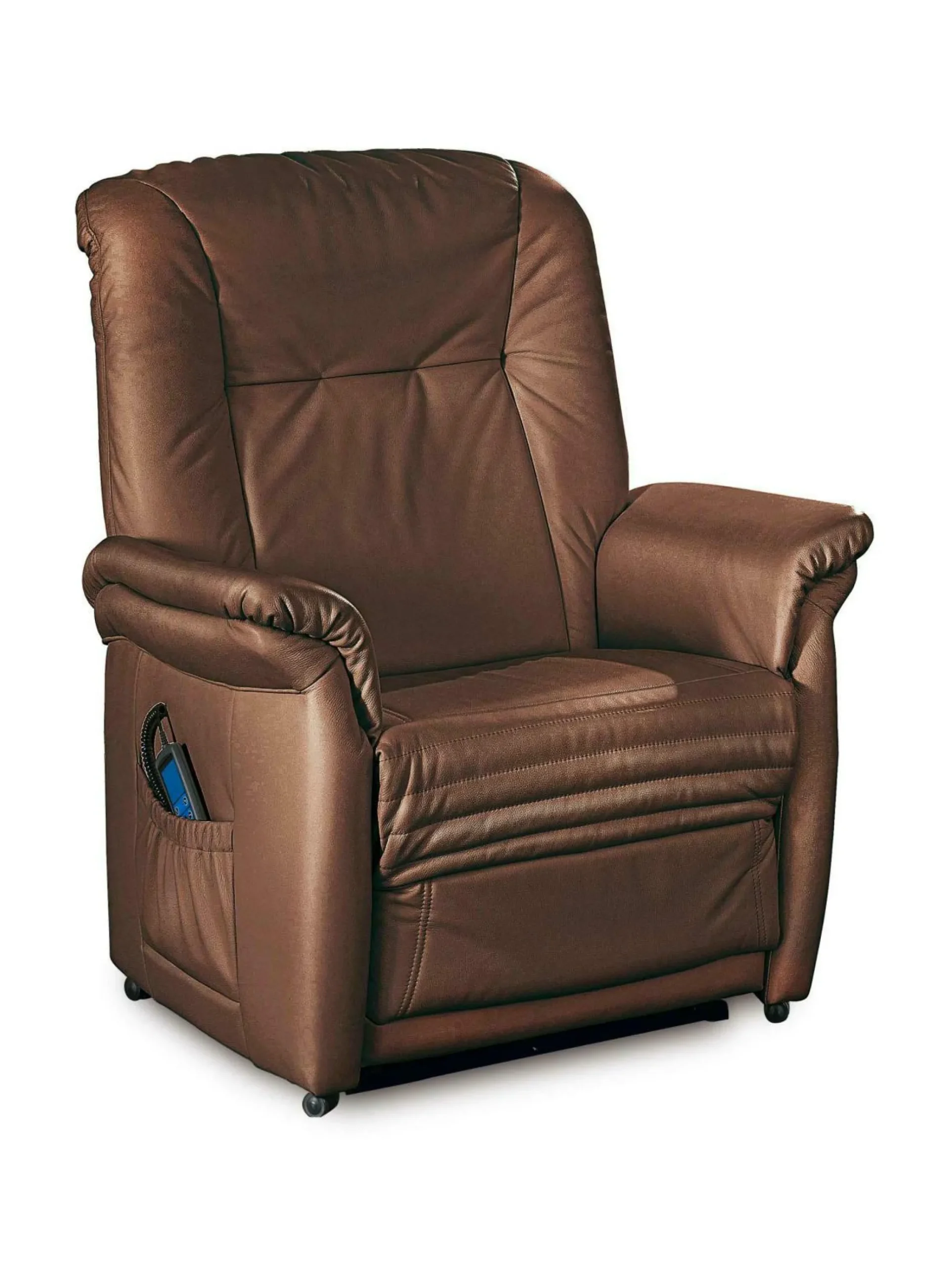 Schaffen Sie sich mit dem Relax-Sessel Dillberg einen Ort der Entspannung. Ausgestattet mit einem hochwertigen Echtlederbezug in Schoko sorgt der bequeme Einzelsessel für ein warmes und gemütliches Ambiente. Durch die getrennten Verstellmöglichkeit von Fußstütze, Rücken und Aufstehhilfe mittels dreier E-Motoren und den Sitzunterbau aus Superlastic Med lässt sich Dillberg problemlos an Ihre individuellen Komfortbedürfnisse anpassen. Ein beleuchteter Handschalter in Grau sowie vier leichtgängige Rollen ermöglichen eine bequeme und einfache Handhabung der verschiedenen Funktionen.