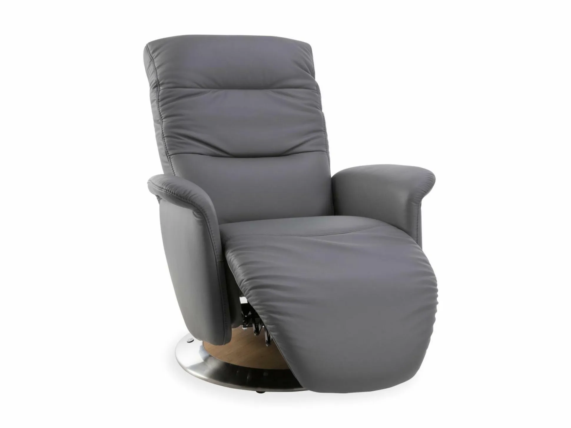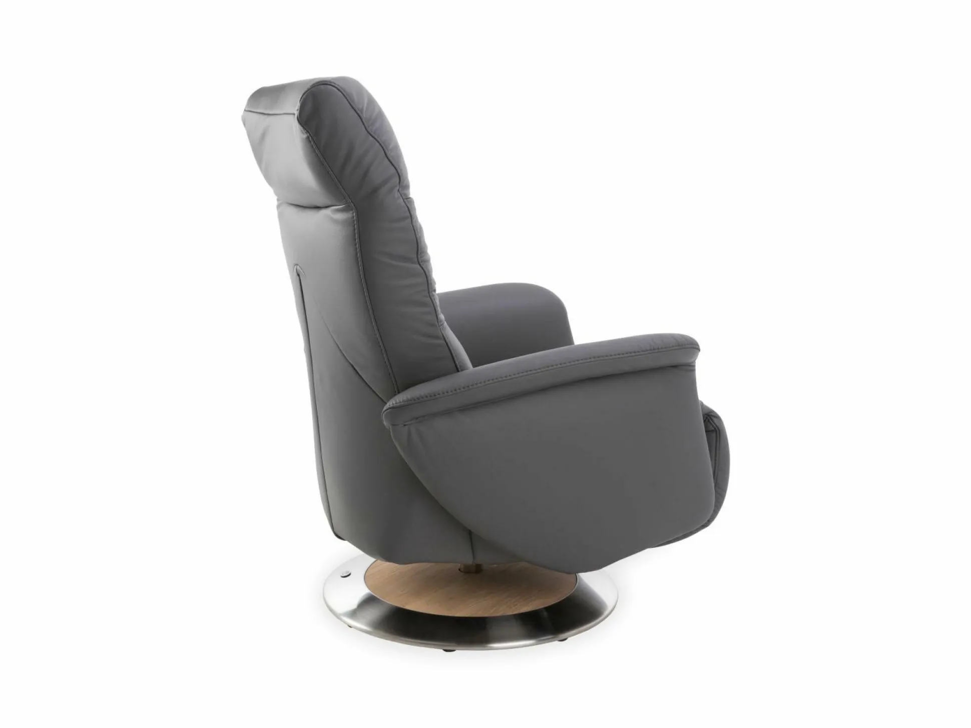 Der Relaxsessel Recreo von MONDO zeigt sich in der schicken Farbe Schiefer. Er verfügt über eine manuelle Sitzverstellung sowie über eine manuelle Rückenverstellung mit Gasdruckfeder. Durch den Superlastic Soft Sitz mit Lederbezug genießen Sie ein erholsames Sitzgefühl. Der Holzteller mit Edelstahlring besteht aus Wildeiche und verspricht einen festen Stand des Relaxsessels. So können Sie sich bequem zurücklehnen und luxuriös darin entspannen.