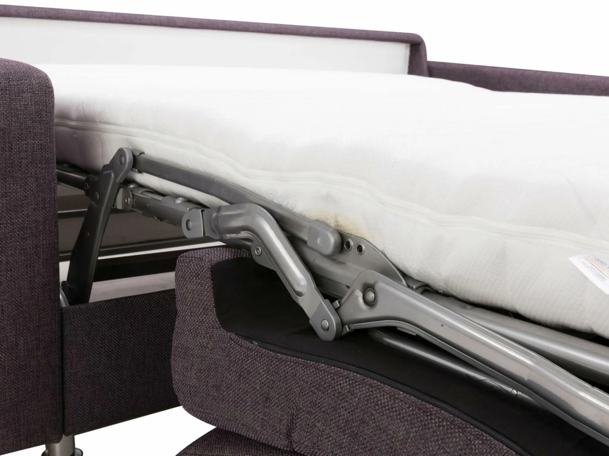 Dessin: Stoff 10-5026, 100% Polyester, Liegefläche ca. 140 x 200 cm, Kaltschaum-Matratze, Unterfederung Gitterrost – Standard Armlehne Nr. 19 = B ca. 195 cm, Fuß 84 Zylinder Chrom, auf Wunsch Ergoflex, Kissen und Kaltschaummatratze