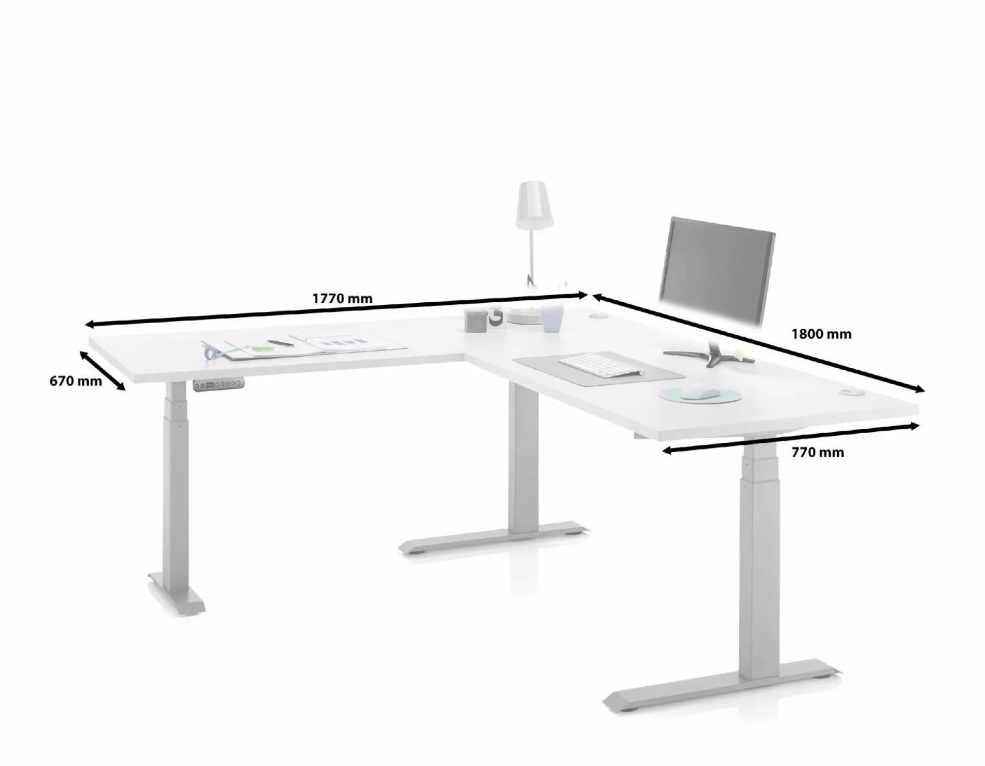 · inkl. 3 Memory-Tasten, einer Digitalen Höhenanzeige und zwei Kabeldurchführungen auf der Tischplatte, Ben