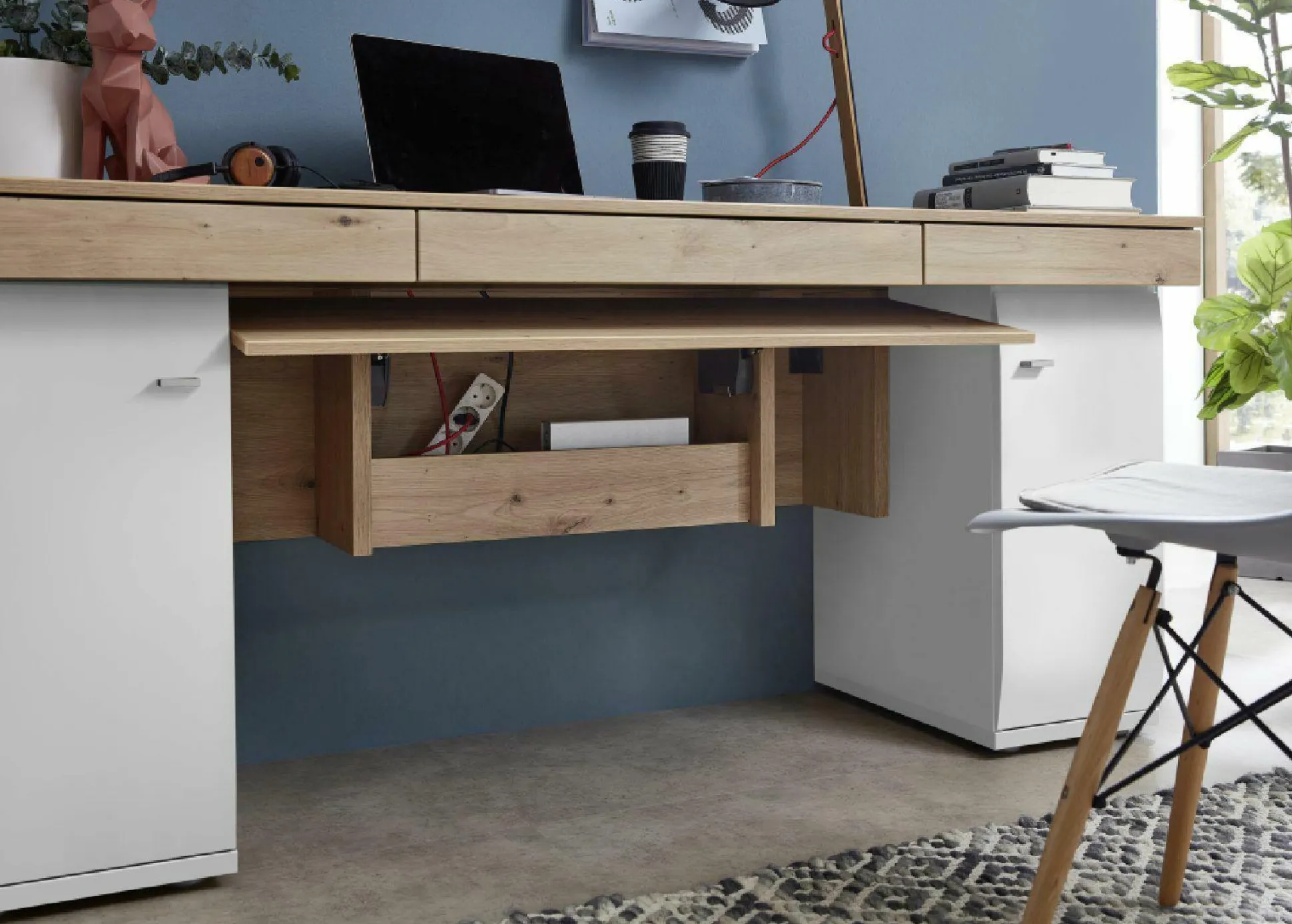 · Schreibtischpaltte, mit zwei Klappen und zwei Schubladen
